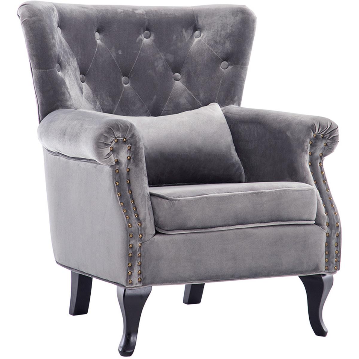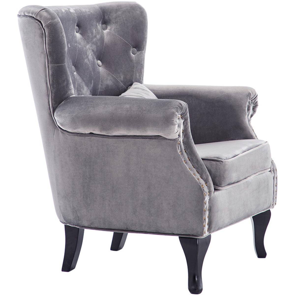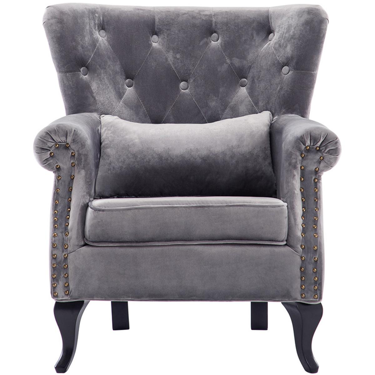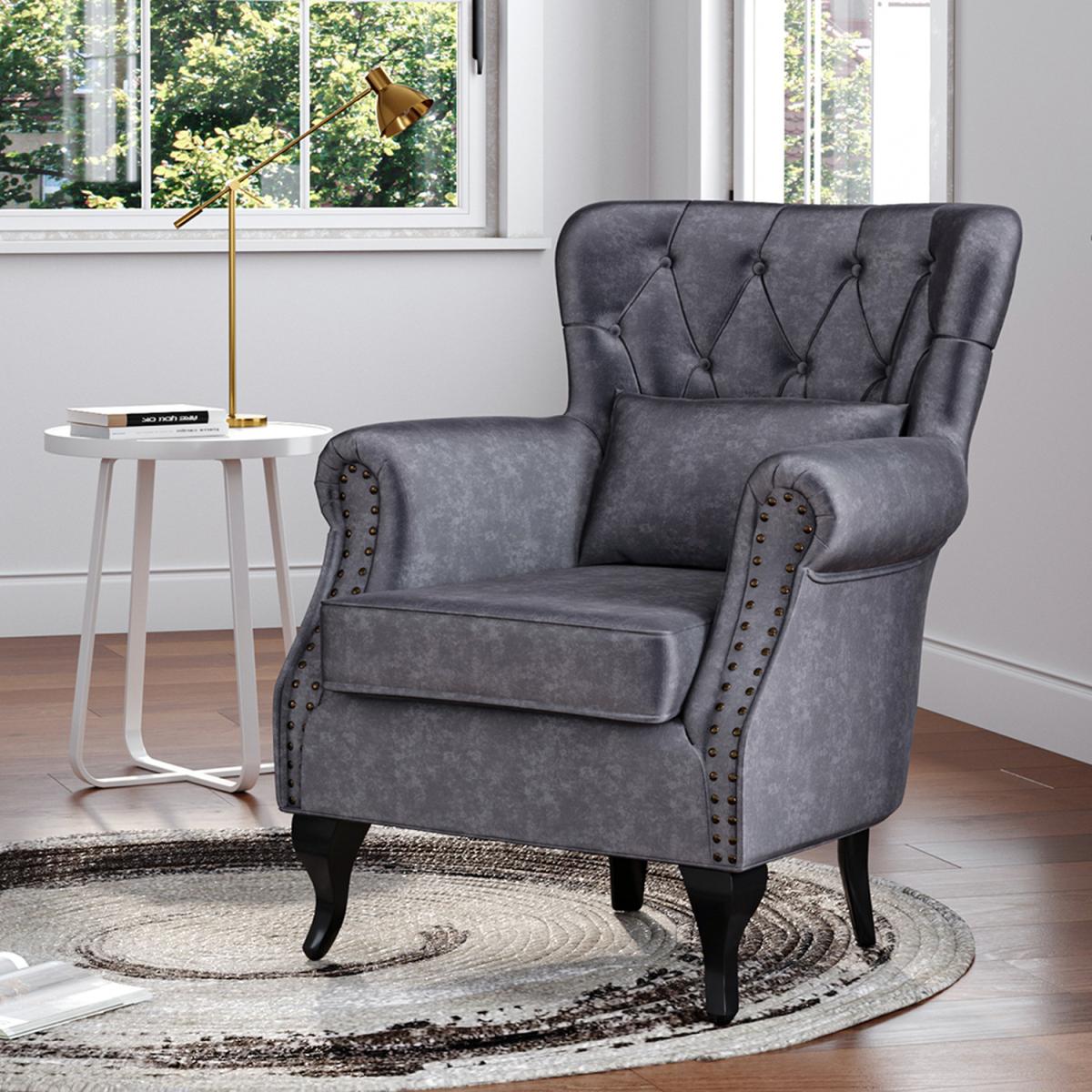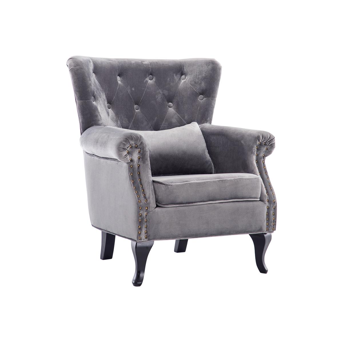 This vintage armchair is unique in European palace style. The Chair has a wingback design with button detailing, side wings and roll armrests, in front of which there are also metal nails for decoration. It is upholstered in velvet and filled with a high-density sponge. Such an upscale and atmospheric chair is absolutely ideal for a business place or any house.