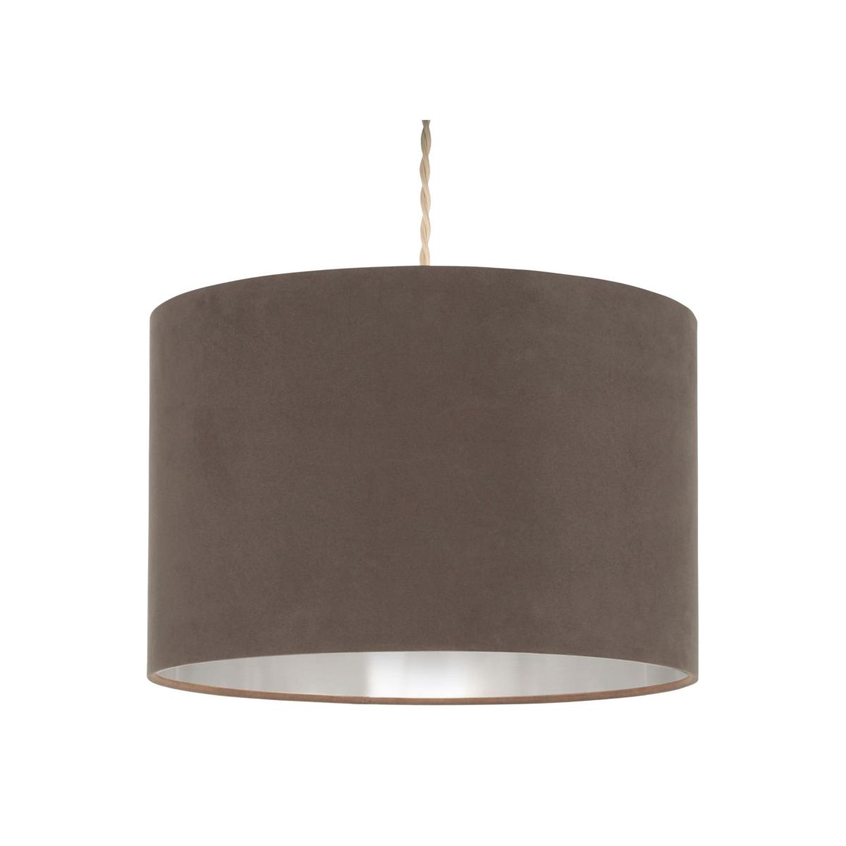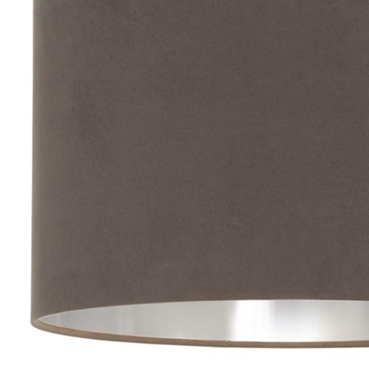 Velvie 1-light easy-fit pendant shade, featuring a classic drum shape, a dark grey, matte velvet exterior and a brushed chrome-effect inner. Elevate your lighting with the sophisticated Velvie easy-fit pendant shade. This classic cylindrical shade features a dark grey velvet exterior that exudes modern elegance. The brushed metallic inner adds a subtle sheen, beautifully reflecting light to create a warm and inviting ambiance. Designed for convenience, the Velvie shade fits effortlessly onto existing light fixtures, making it a quick and stylish update for any room. Perfect for living rooms, bedrooms or dining spaces, its sleek combination of textures and tones enhances a variety of interior styles, bringing a touch of understated luxury to your home. Velvie 1-light easy-fit pendant shade, featuring a classic drum shape, a dark grey, matte velvet exterior and a brushed chrome-effect inner. Elevate your lighting with the sophisticated Velvie easy-fit pendant shade. This classic cylindrical shade features a dark grey velvet exterior that exudes modern elegance. The brushed metallic inner adds a subtle sheen, beautifully reflecting light to create a warm and inviting ambiance. Designed for convenience, the Velvie shade fits effortlessly onto existing light fixtures, making it a quick and stylish update for any room. Perfect for living rooms, bedrooms or dining spaces, its sleek combination of textures and tones enhances a variety of interior styles, bringing a touch of understated luxury to your home.