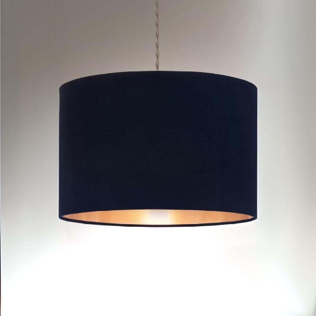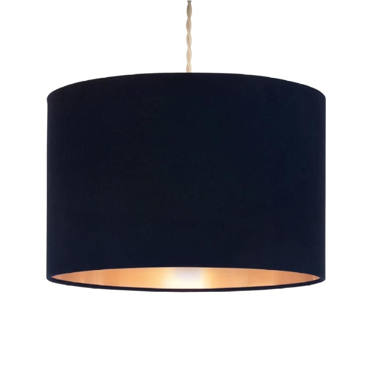 Velvie easy-fit pendant shade, a dark navy velvet cylinder shade with a reflective, brushed copper-effect inner. The Velvie easy-fit pendant shade is a stunning piece, combining rich texture with a touch of metallic elegance. The luxurious navy velvet exterior adds depth and sophistication, while the copper-effect inner creates a warm, inviting glow when illuminated. Designed for easy installation, this shade can be fitted onto an existing pendant light in moments, making it a simple yet impactful way to update your interior décor. The contrast between the deep navy velvet and the reflective copper tones brings a contemporary yet timeless feel, perfect for living rooms, bedrooms or dining areas. Velvie easy-fit pendant shade, a dark navy velvet cylinder shade with a reflective, brushed copper-effect inner. The Velvie easy-fit pendant shade is a stunning piece, combining rich texture with a touch of metallic elegance. The luxurious navy velvet exterior adds depth and sophistication, while the copper-effect inner creates a warm, inviting glow when illuminated. Designed for easy installation, this shade can be fitted onto an existing pendant light in moments, making it a simple yet impactful way to update your interior décor. The contrast between the deep navy velvet and the reflective copper tones brings a contemporary yet timeless feel, perfect for living rooms, bedrooms or dining areas.