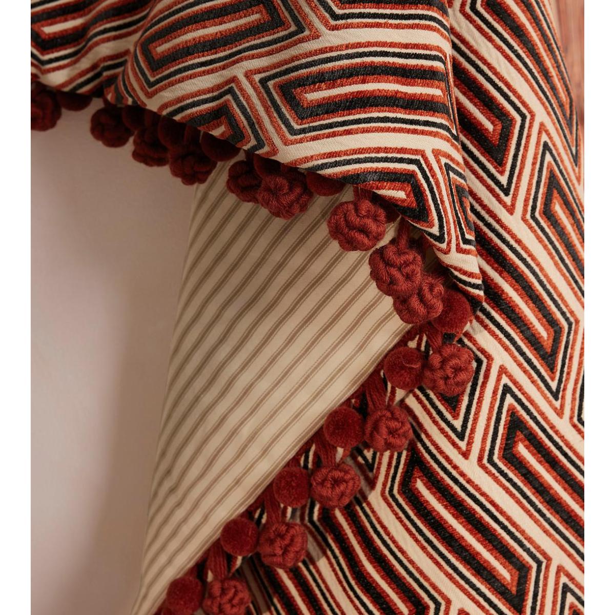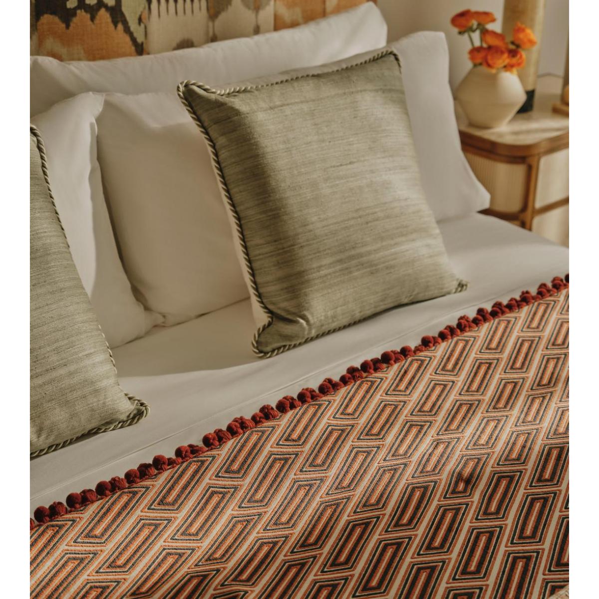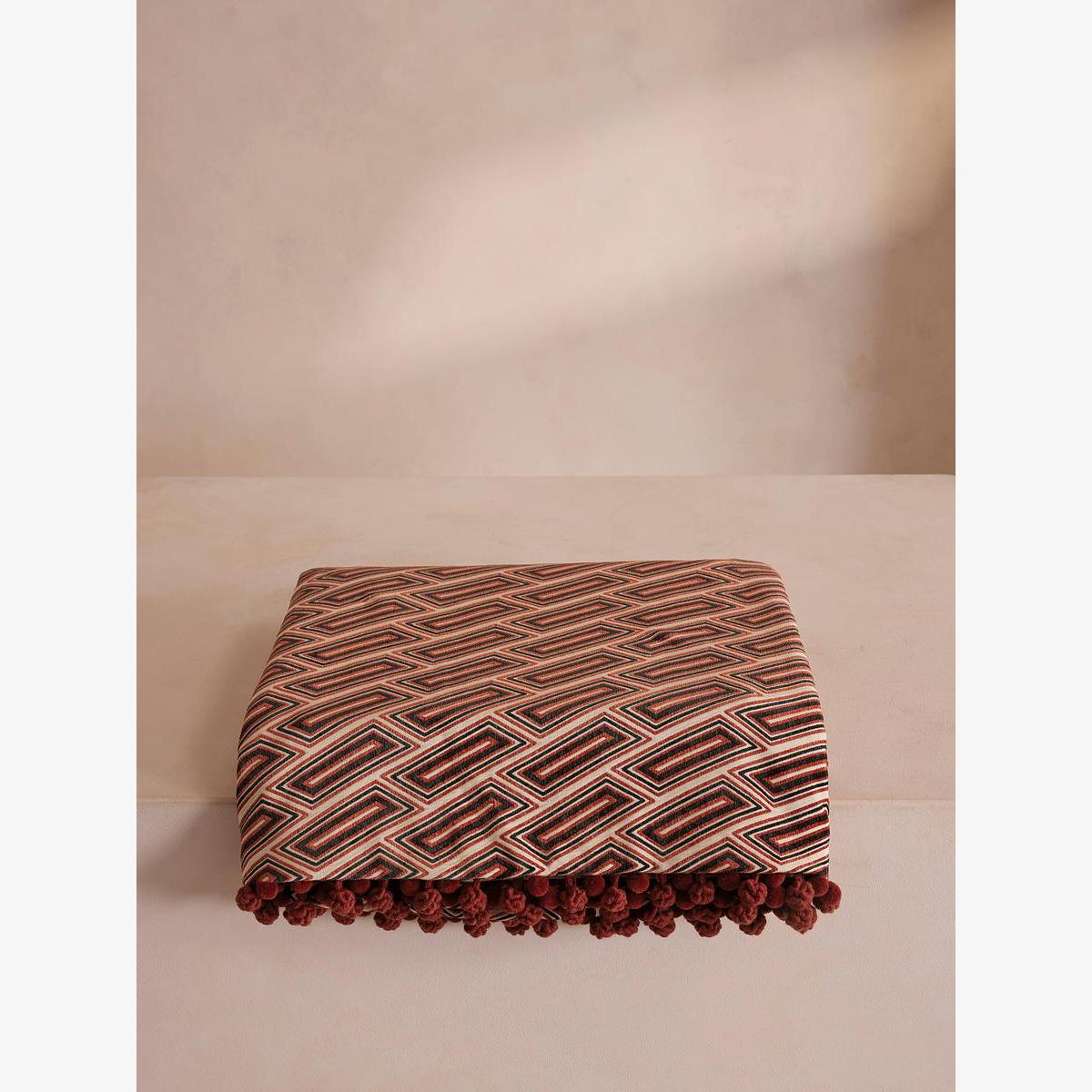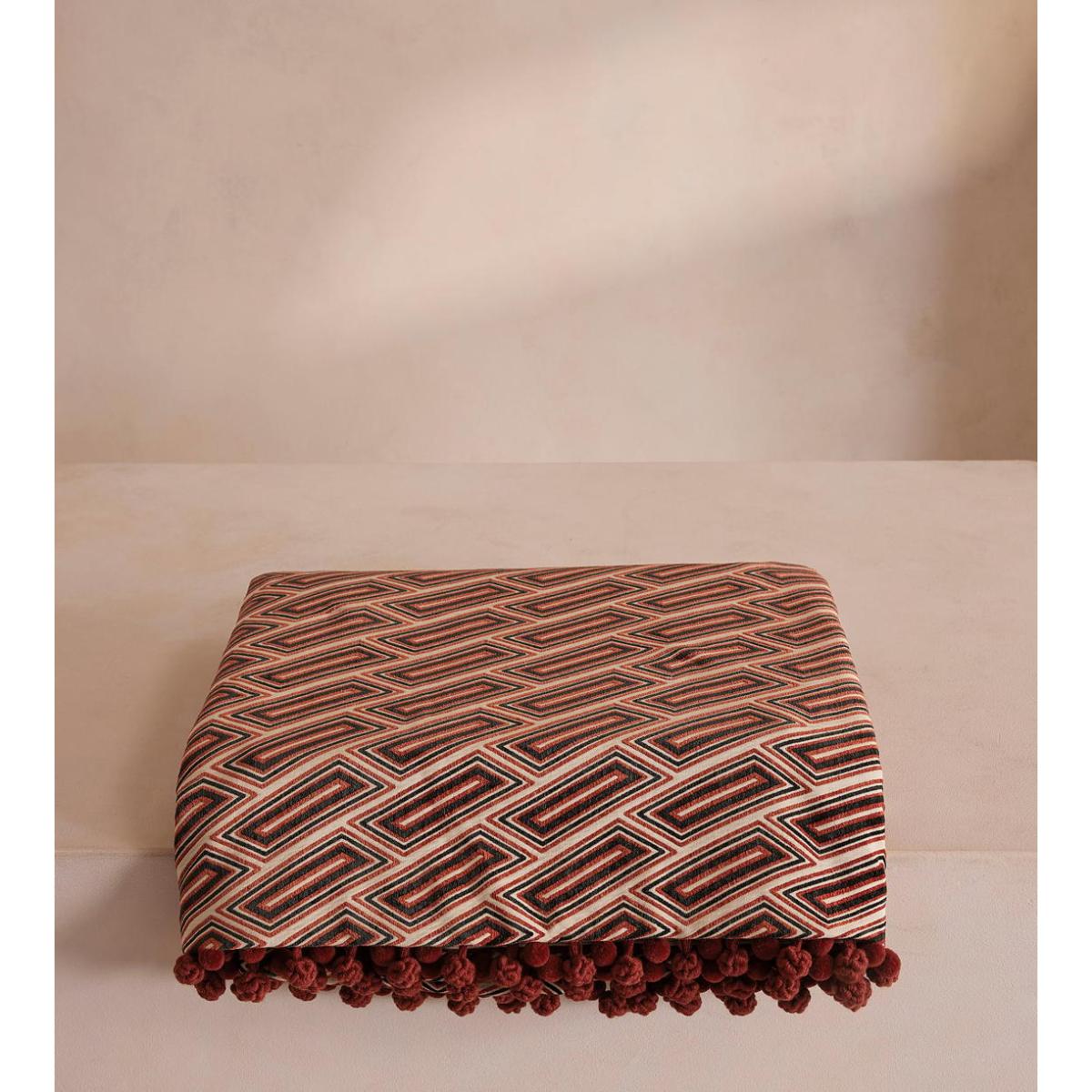 Originally drawn by our design team, this bold geometric pattern was then woven into a jacquard fabric by artisans in Turkey. The exclusive geometric pattern on our Vende bedspread is inspired by the interiors of Soho House 40 Greek Street, with golden olive tones bringing warmth to your room. It is detailed with a pompom trim in a brightly contrasting shade.