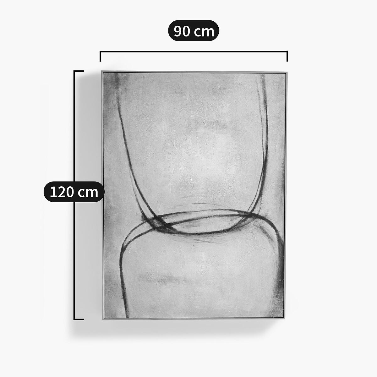 Balance and movement. This hand-painted canvas is highlighted by soft, edgy lines that stand out against an aged-effect background. The vitality of the lines brings a dynamic quality to the whole piece. Product Details • Hand-painted linen canvas, each piece is unique • Pine frame with oak stain finish • Linen back • Brackets for wall mounting (screws and plugs not supplied)Dimensions • Width: 90cm • Height: 120cm • Thickness: 4.4cm • WOOD FROM SUSTAINABLY MANAGED FORESTS. FSC® certified wood comes from forests that are environmentally, socially and economically well managed. Dimensions and weight of parcel • 1 parcel • L128 x H97 x D6.5cm. 5.8kg