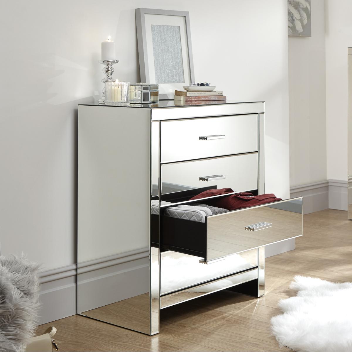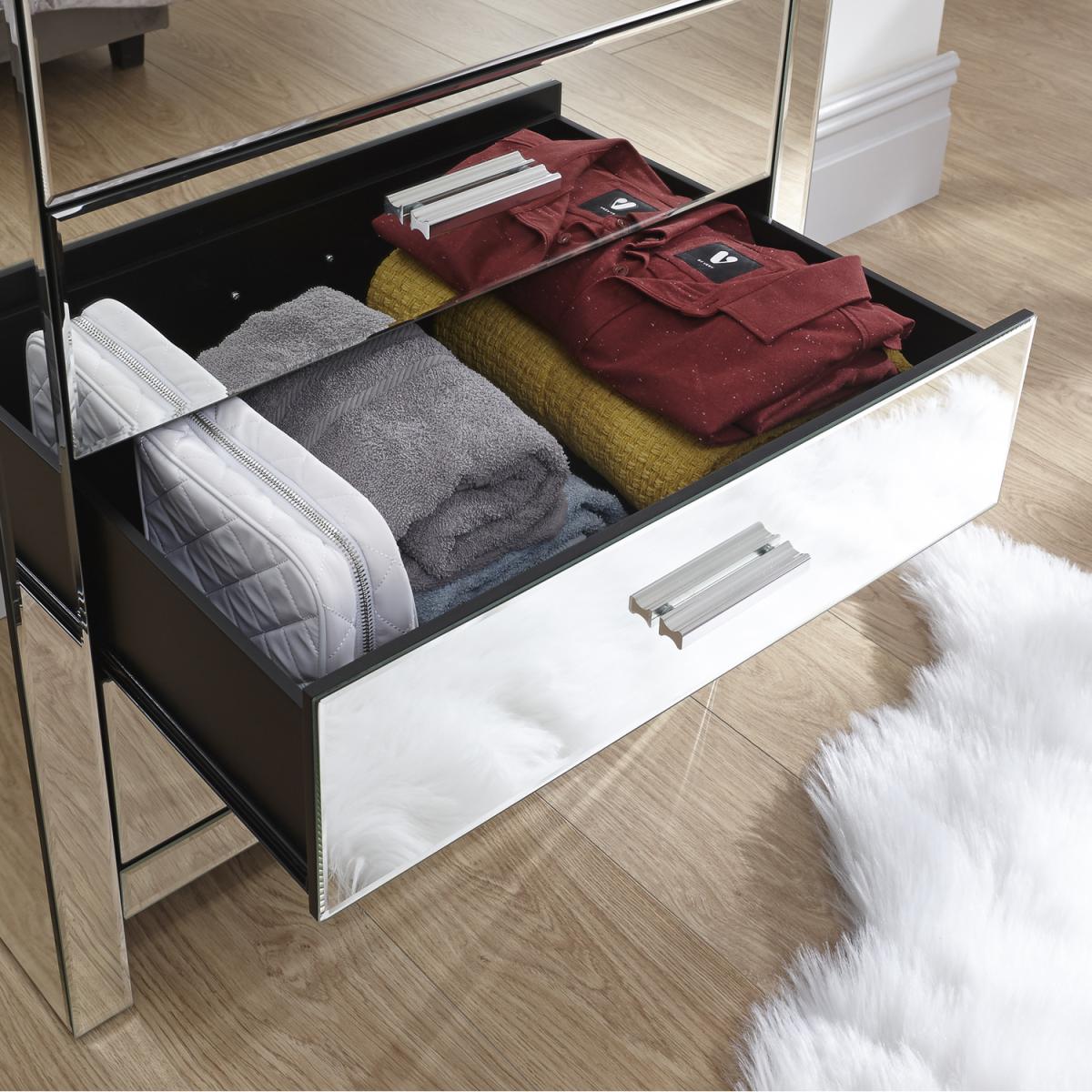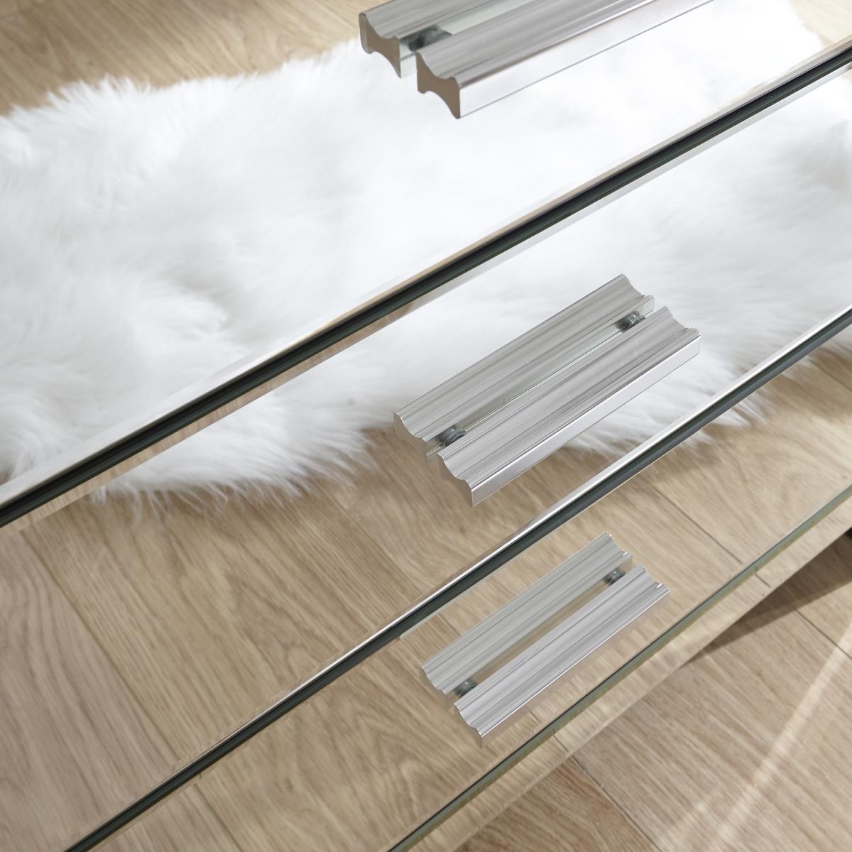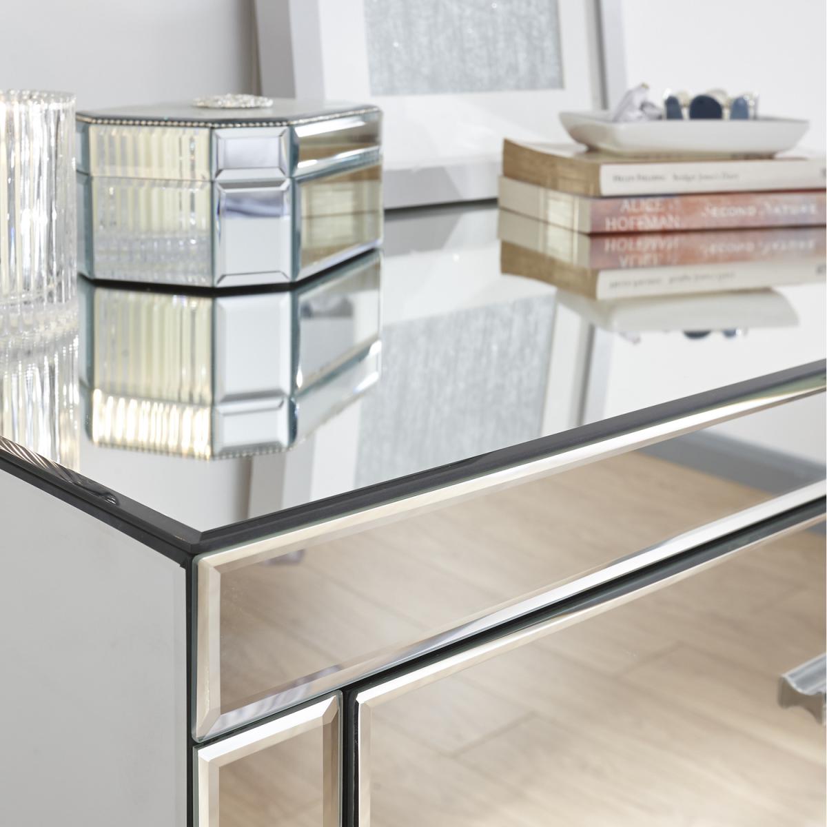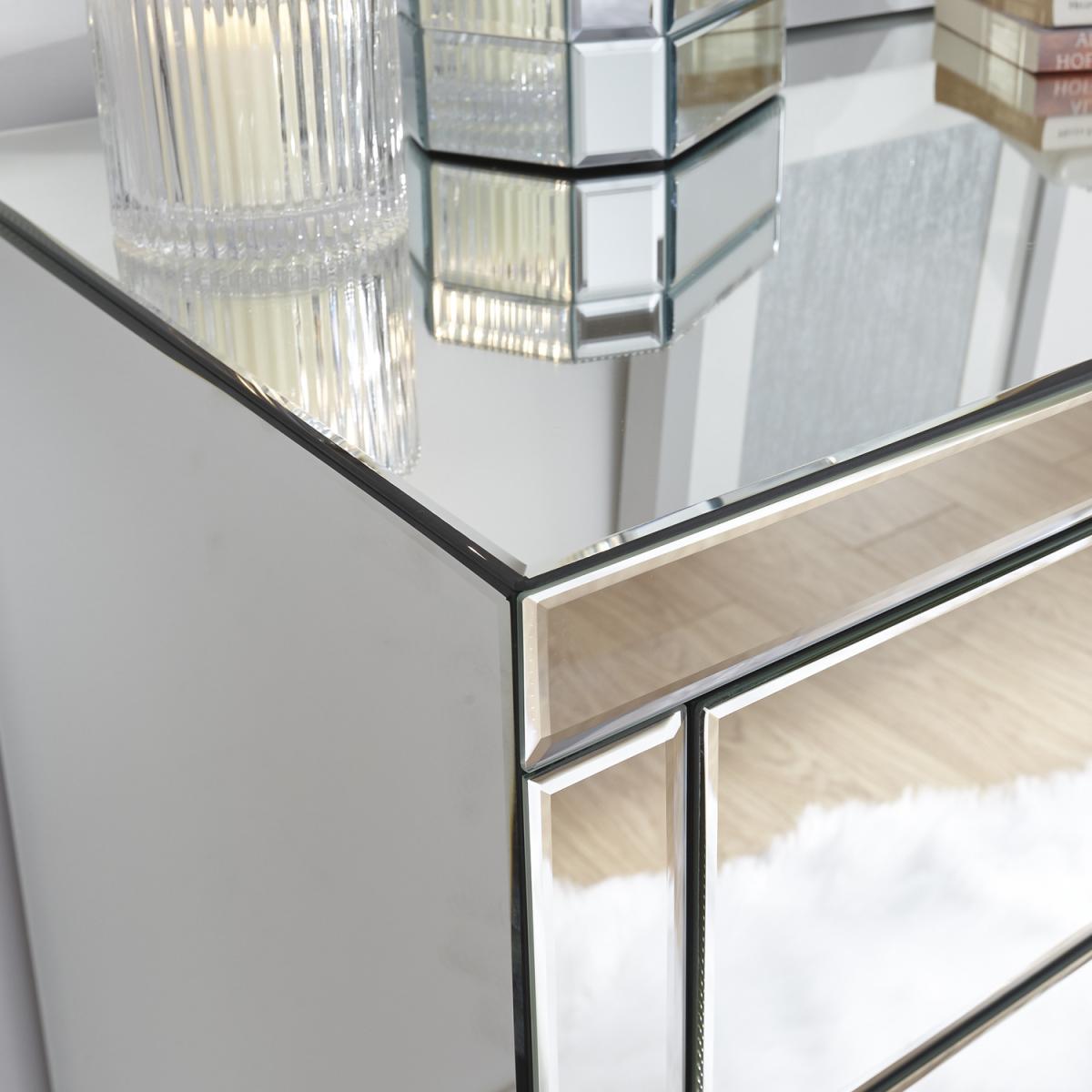 This stunning Venetian mirrored furniture is modern and clean in design with simple straight edges and beautiful bevelled edges. Due to the reflective mirrored finish this furniture helps give rooms the feeling of more space due to the reflection of light.
