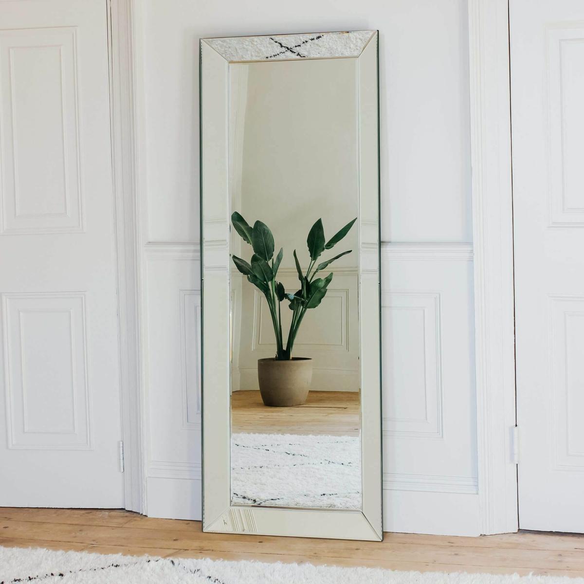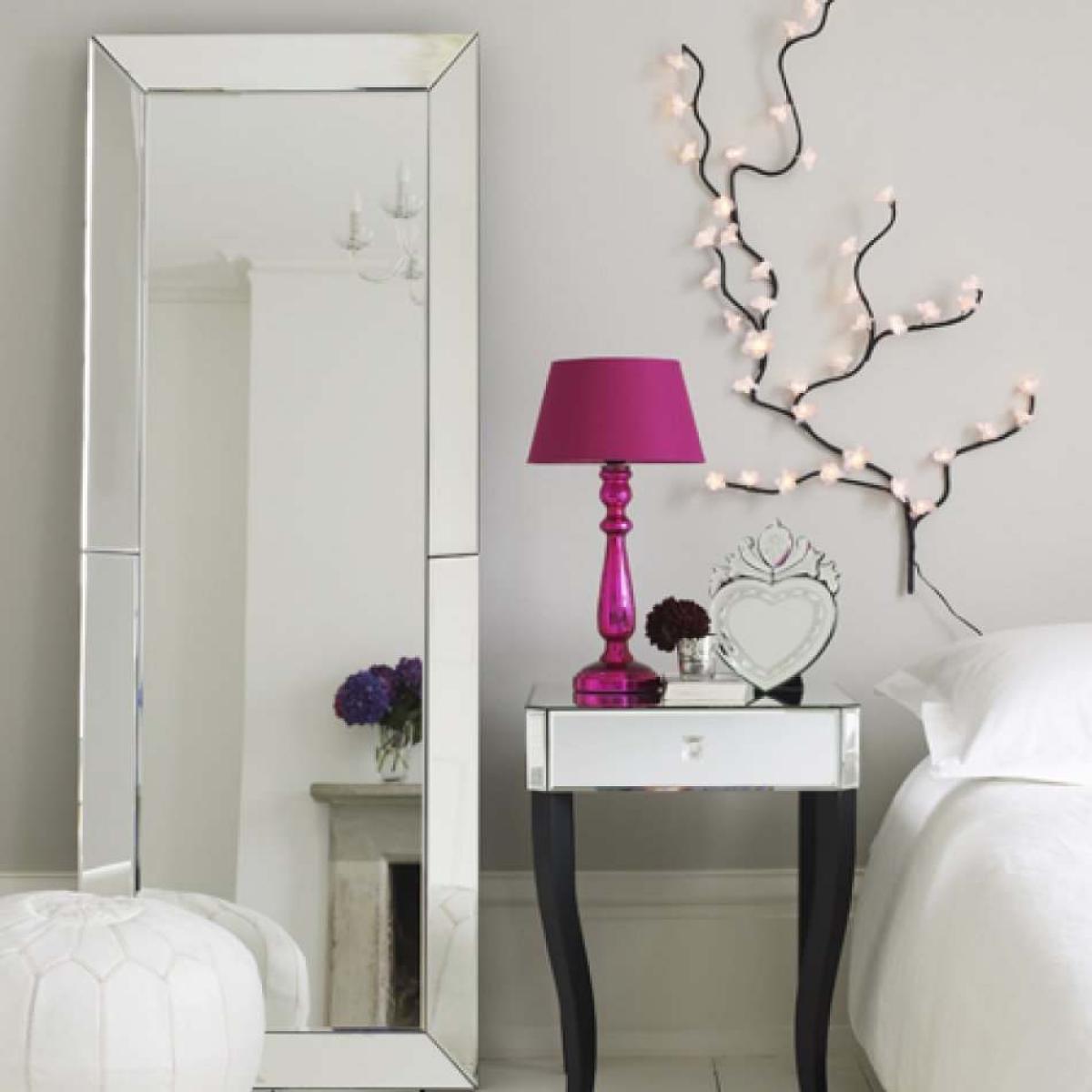 I love the Venetian floor mirror for its sleek, contemporary frame that adds a touch of sophistication to any space. It works particularly well in bedrooms and dressing areas, where its full-length design maximises natural light and creates the illusion of more space. To style it effectively, consider pairing it with minimalist or modern decor and placing it opposite a window to reflect light. Its reflective surface also helps in brightening darker corners. A practical tip is to position it near a piece of statement furniture, like the striking pink lamp in the example, to balance the visual interest without overwhelming the room. This mirror is versatile, adding a punch of glamour while maintaining a clean and fresh aesthetic.