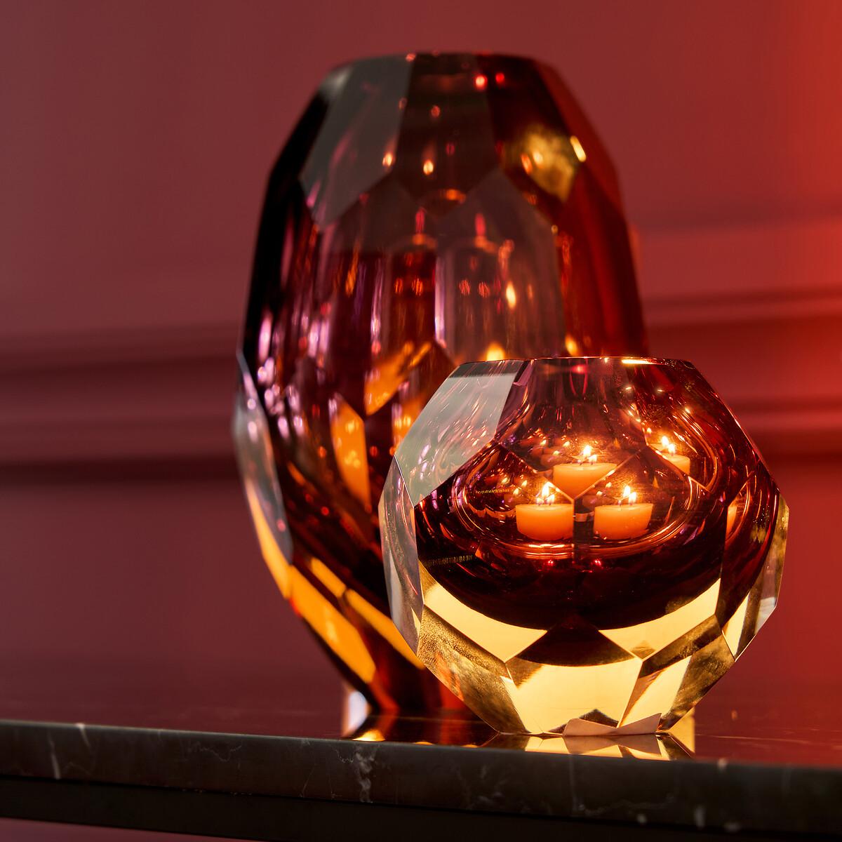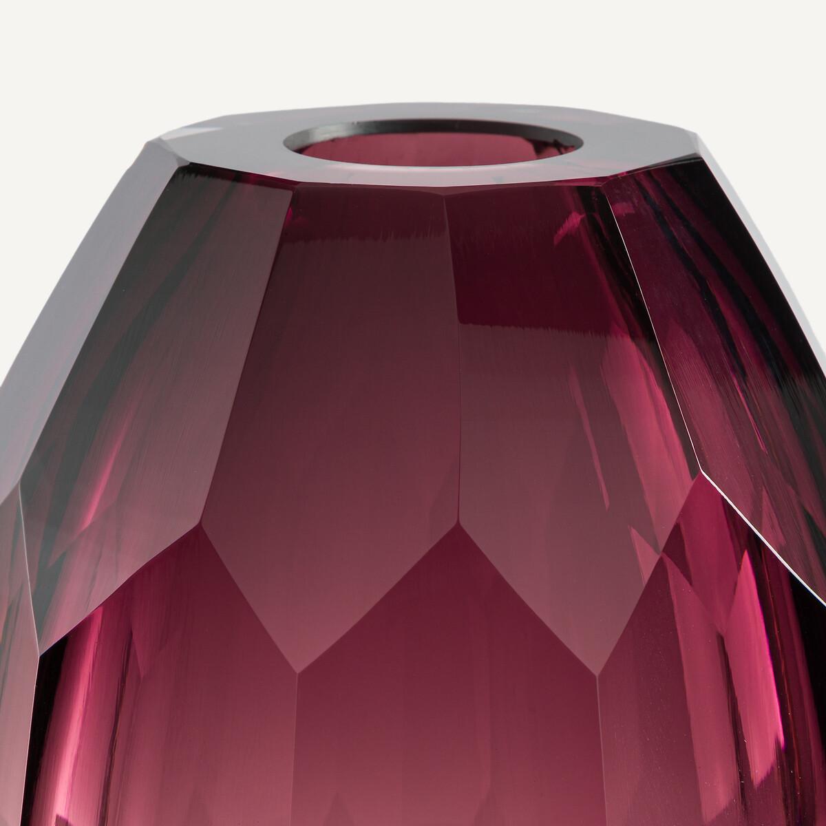 Made from thick, hand-blown glass, then cut and polished by hand, the Veneto vase is the embodiment of exceptional craftsmanship. The deep burgundy red hue catches the light. It reveals a subtle sparkle and changing reflections that highlight each of its facets. Product Details • Thick glass, hand-blown, cut and polished by hand • Hand crafted: Each piece is unique • Shapes, colours and dimensions may vary slightly from product to product. Dimensions • Width: 12.5cm • Height: 19cm • Depth: 12.5cm. Dimensions and weight of parcel1 parcel • W18.5 x H25 x D18.5cm, 2.8kg