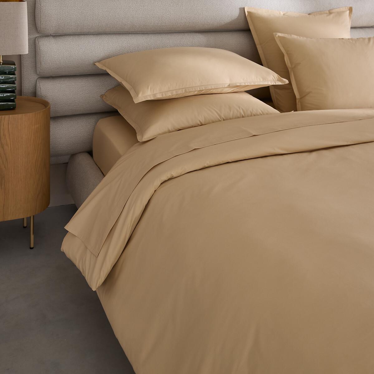 Made in Portugal, Veneto cotton percale bed linen combines quality and craftsmanship. Its tight weave gives this high-quality fabric strength and a pleasant feel. Product Details • Cotton percale • 100% cotton • Organic cotton • 300 Thread Count: a common indicator for measuring the quality of fabric is the number of threads per cm². Different sensations are made possible thanks to the weaving and the number of threads present. Indeed, an optimal number of threads makes the bed linen particularly soft. • Straight buttoned hem Care Advice Follow our care tips to maintain the quality of your laundry • Machine washable at 40°C • Tumble dry at low temperature • Iron at average temperature • Do not dry clean. Dimensions • 140 x 200cm: Single • 200 x 200cm: Double • 220 x 240cm: King • 240 x 260cm: King • Made in Europe. • Cotton from organic farming. Organic farming does not use any chemicals, pesticides, insecticides or GMOs. Produced with minimal impact on biodiversity. • OEKO-TEX® Standard 100. Standard 100 certification by OEKO-TEX® tests textile products for harmful substances via an independent, international label.