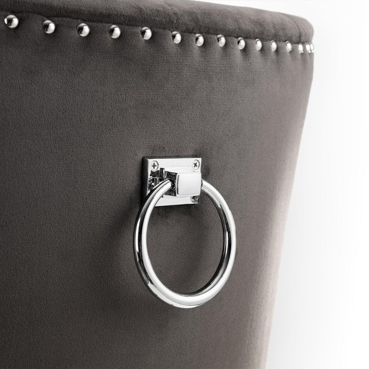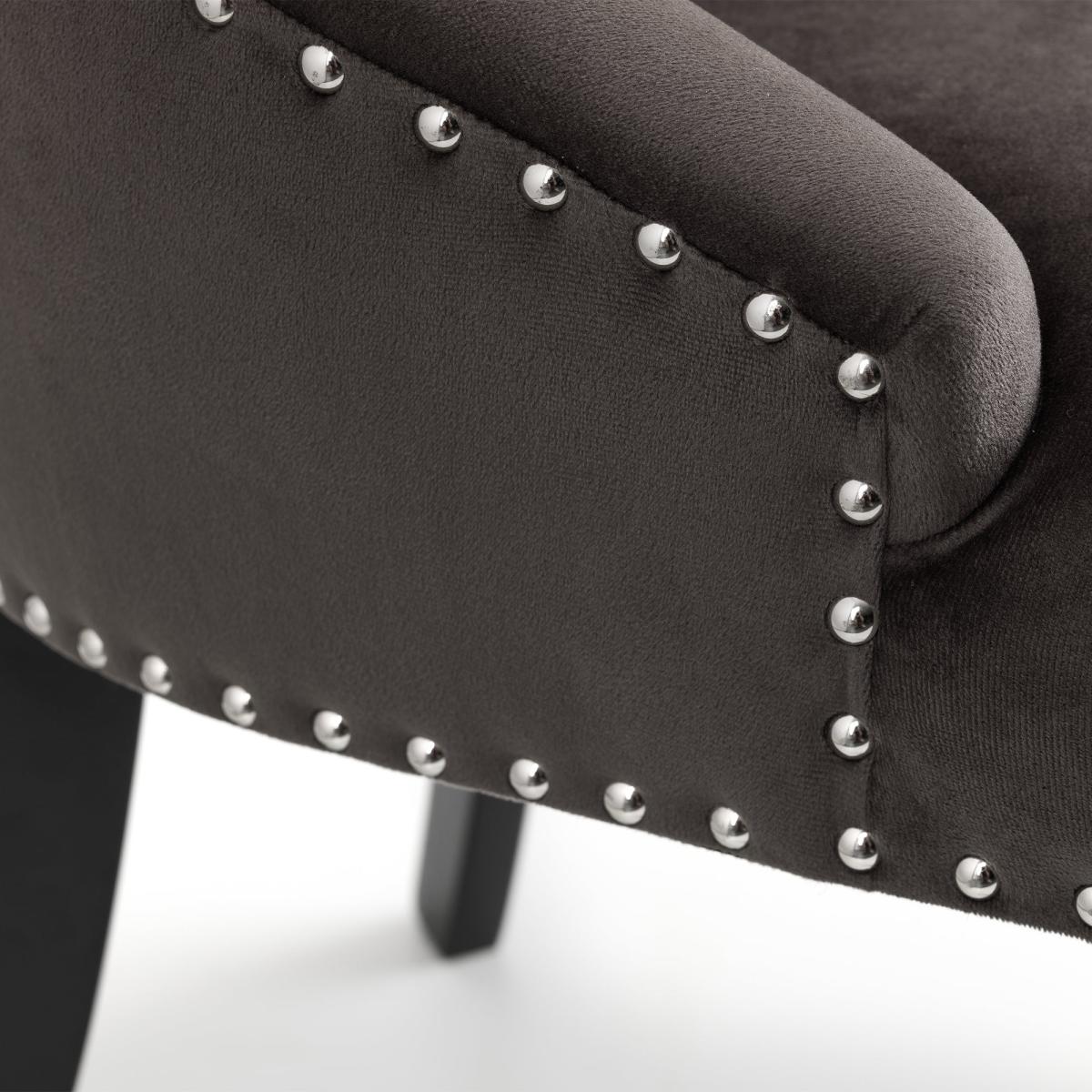 * 2 x Dining Chairs* Metal ring detailing* Deep buttoning and metal stud trim* Black lacquered legs These chairs exude opulence with their metal ring detail on the back, glamorous deep buttoning, and metal stud trim. Finished with sturdy black lacquered legs, they are as durable as they are stylish. Whether used as statement pieces or as part of a dining set, these dining chairs are sure to elevate the ambiance of any dining room with their elegant and sophisticated design.