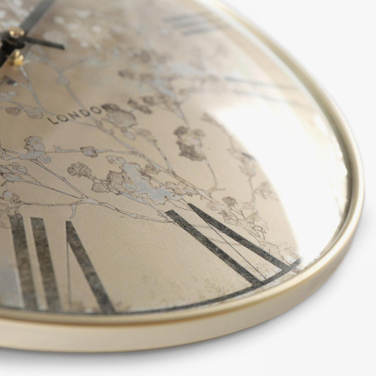 Full of vintage charm, the Veneto Wall Clock is the perfect blend of tradition and style. Featuring a delicate floral print beneath a convex glass lens, with brown Roman numerals and a luxurious champagne toned rim, this clock is the perfect luxurious addition.