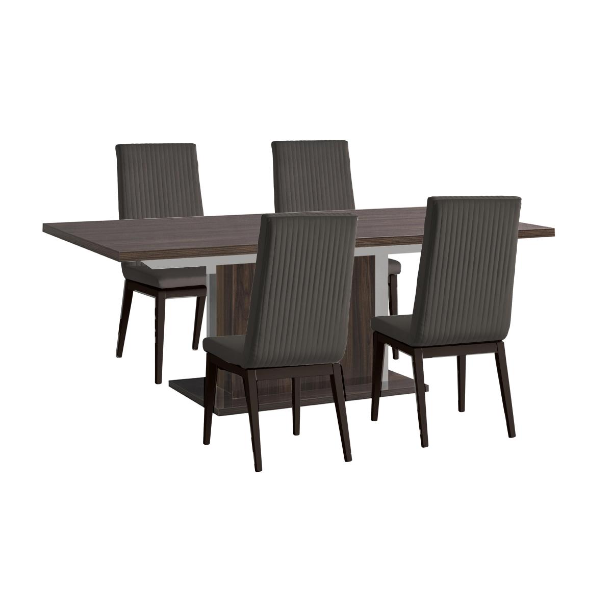If you see yourself living in luxury, it’s time to get acquainted with our stunning Venezia dining collection. Made in Italy, the range’s dining tables, dining sets, chairs and storage furniture feature a beautiful high-gloss, hand-applied lacquered finish that’s smooth to the touch and a delight to the eyes. And from the tables’ bold pedestal bases to the elegantly upholstered dining chairs, the details are the very definition of showstopping style. A perfect fit whatever the size of your home – the extending dining table is offered in two sizes – this fabulous collection also includes living room furniture. Exclusively available at Furniture Village. This is a simply beautiful dining set. From the glossy lacquered table to the fluted dining chairs, every detail is gorgeous. Made in Italy and only at Furniture Village. Why you'll love it You’ll want to gather everyone around this high-end dining set with beautiful lacquered table. Distinctive glam style. Table and chairs have a gorgeous high-gloss grey lacquered finish that’s hand-applied. Also offered in a walnut finish. Dining table has an ultra-smooth sliding extension mechanism. Extended or not, the table top is always pattern-matched. Dining set includes 4 fluted dining chairs. Faux leather upholstery in on-trend taupe. Beautifully crafted in Italy and exclusive to Furniture Village. This dining set is part of the Venezia dining range. What you need to know Extending dining table is supplied with a 45 cm extension leaf. Table accommodates 2 extension leaves. 1 extra leaf can be purchased separately. 1 extension leaf can be stored under the table top. Table seats 8 unextended, 10 with 1 extension leaf, and 12 with 2 extension leaves. Chair cushioning is made of foam. Chair frame is made with solid beech wood. The lacquered finish is 4 layers deep, the result of a unique high-tech process. Please note that the lacquered finish may show surface scratches under certain lighting. Love the look? Be sure to explore our Venezia bedroom collection.