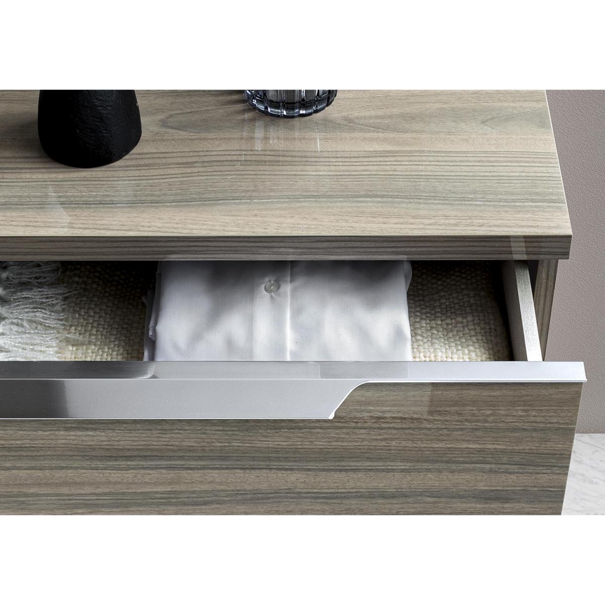 Sophisticated statement design. Luxurious high-gloss finish. Stunning Italian craftsmanship. Meet one of the most beautiful bedroom furniture ranges. The Venezia collection of bed frames, chests of drawers, bedside cabinets, wardrobes and more has a hand-applied lacquered finish that instantly gives any bedroom a high-end glamorous look. And with a wide choice of wardrobes in all sizes as well as large and small storage pieces, it’s a look that’s a perfect fit for any bedroom. Made in Italy, the Venezia bedroom furniture collection is exclusively available at Furniture Village. The perfect companion to the Venezia bed frame with LED lights, this beautiful high-gloss bedside cabinet is made in Italy. Only at Furniture Village. Why you'll love it. This 2-drawer bedside cabinet is fabulous as well as functional. Distinctive glam style. Gorgeous high-gloss grey lacquered finish is hand-applied. Stands on a stainless steel plinth. Elegant chrome-effect metal drawer handles and drawer trim. Also offered in a silver birch finish. Beautifully crafted in Italy and exclusive to Furniture Village. This 2-drawer bedside cabinet is part of the Venezia bedroom range. What you need to know. Drawers are soft-closing. This piece’s lacquered finish is 4 layers deep, the result of a unique high-tech process. Please note that the lacquered finish may show surface scratches under certain lighting. Love the look? Be sure to explore our Venezia dining collection.
