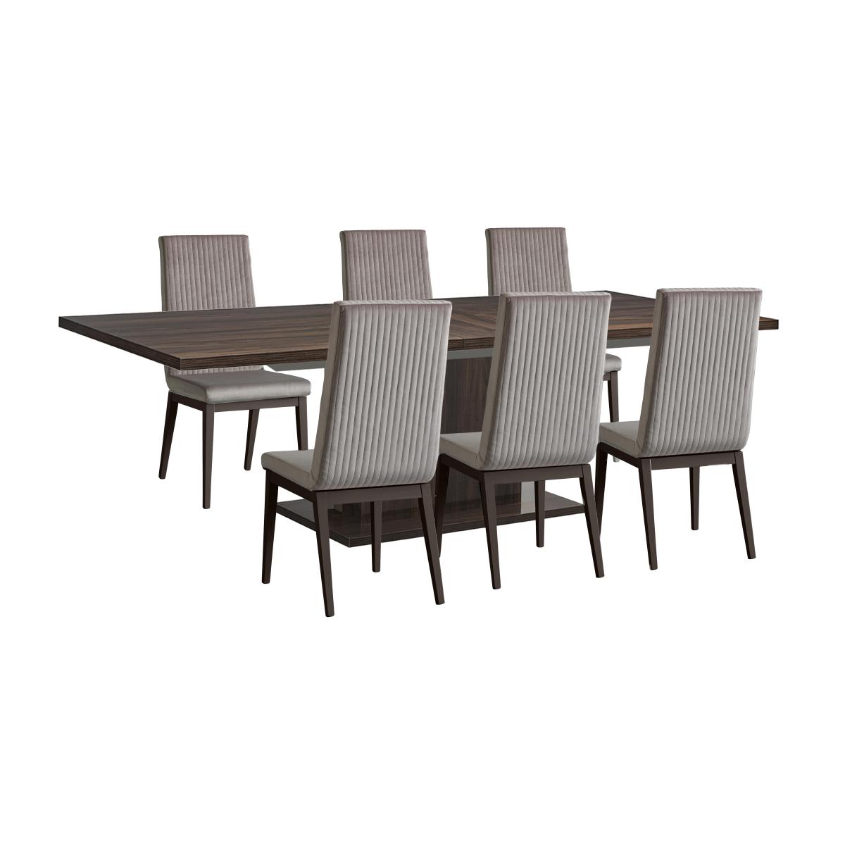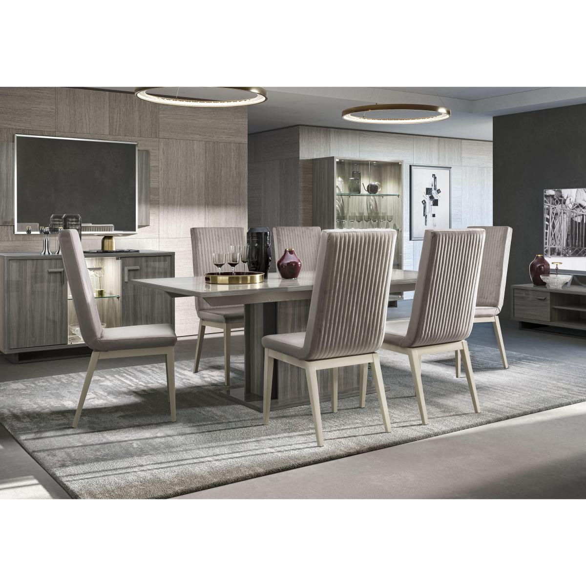 If you see yourself living in luxury, it’s time to get acquainted with our stunning Venezia dining collection. Made in Italy, the range’s dining tables, dining sets, chairs and storage furniture feature a beautiful high-gloss, hand-applied lacquered finish that’s smooth to the touch and a delight to the eyes. And from the tables’ bold pedestal bases to the elegantly upholstered dining chairs, the details are the very definition of showstopping style. A perfect fit whatever the size of your home – the extending dining table is offered in two sizes – this fabulous collection also includes living room furniture. Exclusively available at Furniture Village. This Venezia dining set is nothing short of a showstopper. From the statement lacquered extending table to the fluted formal dining chairs, heads will definitely turn. Why you'll love it Everything about this beautiful dining set is unmistakably Italian. Distinctive glam style. Table and chairs have a gorgeous high-gloss grey lacquered finish that’s hand-applied. Also offered in a walnut finish. Dining table has an ultra-smooth sliding extension mechanism. Extended or not, the table top is always pattern-matched. Dining set includes 6 fluted fabric dining chairs. Upholstered in taupe velvet. Beautifully crafted in Italy and exclusive to Furniture Village. This dining set is part of the Venezia dining range. What you need to know Extending dining table is supplied with a 45 cm extension leaf. Table accommodates 2 extension leaves. 1 extra leaf can be purchased separately. 1 extension leaf can be stored under the table top. Table seats 10 unextended, 12 with 1 extension leaf, and 14 with 2 extension leaves. Chair cushioning is made of foam. Chair frame is made with solid beech wood. The flattening and shading of pile fabrics like velvet is unavoidable. The lacquered finish is 4 layers deep, the result of a unique high-tech process. Please note that the lacquered finish may show surface scratches under certain lighting. Love the look? Be sure to explore our Venezia bedroom collection.