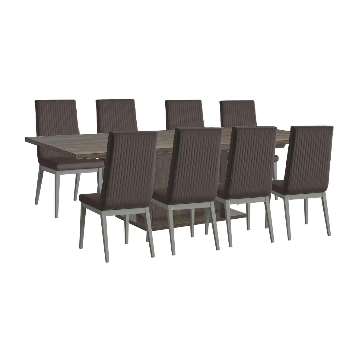 If you see yourself living in luxury, it’s time to get acquainted with our stunning Venezia dining collection. Made in Italy, the range’s dining tables, dining sets, chairs and storage furniture feature a beautiful high-gloss, hand-applied lacquered finish that’s smooth to the touch and a delight to the eyes. And from the tables’ bold pedestal bases to the elegantly upholstered dining chairs, the details are the very definition of showstopping style. A perfect fit whatever the size of your home – the extending dining table is offered in two sizes – this fabulous collection also includes living room furniture. Exclusively available at Furniture Village. Italian design, Italian craftsmanship, Italian style. This fabulous Italian dining set brings it all together in a very glam way. And as the glossy dining table seats up to 12, everyone can enjoy it. Why you'll love it Stunning style and a gorgeous glossy finish – this dining set is everything. Distinctive glam style. Table and chairs have a gorgeous high-gloss grey lacquered finish that’s hand-applied. Also offered in a walnut finish. Dining table has an ultra-smooth sliding extension mechanism. Extended or not, the table top is always pattern-matched. Dining set includes 8 fluted dining chairs. Faux leather upholstery in on-trend taupe. Beautifully crafted in Italy and exclusive to Furniture Village. This dining set is part of the Venezia dining range. What you need to know Extending dining table is supplied with a 45 cm extension leaf. Table accommodates 2 extension leaves. 1 extra leaf can be purchased separately. 1 extension leaf can be stored under the table top. Table seats 10 unextended, 12 with 1 extension leaf, and 14 with 2 extension leaves. Chair cushioning is made of foam. Chair frame is made with solid beech wood. The lacquered finish is 4 layers deep, the result of a unique high-tech process. Please note that the lacquered finish may show surface scratches under certain lighting. Love the look? Be sure to explore our Venezia bedroom collection.
