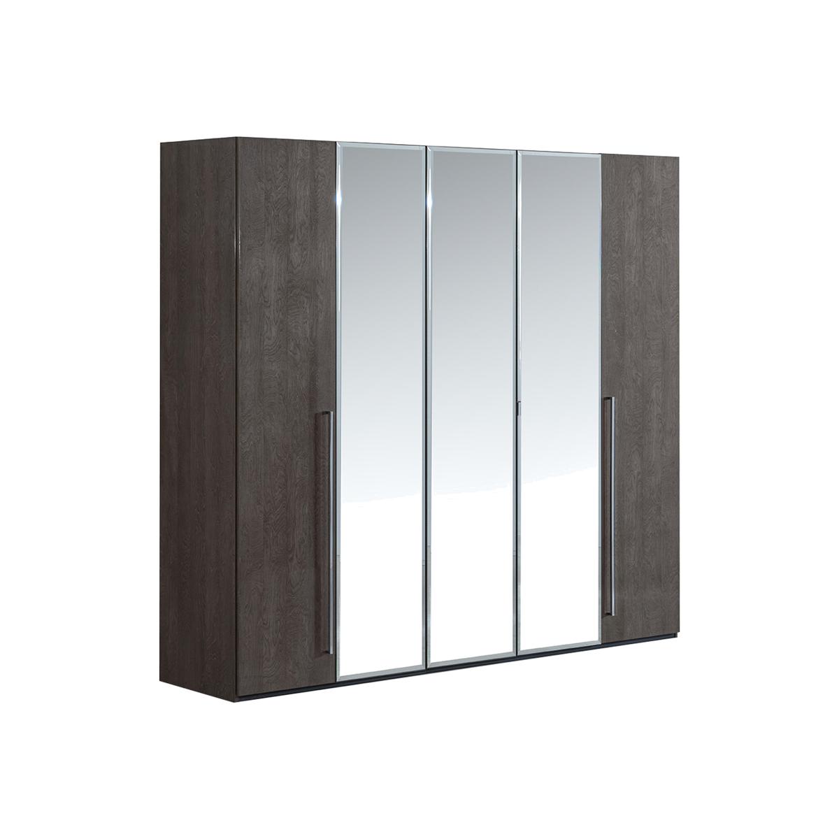 Sophisticated statement design. Luxurious high-gloss finish. Stunning Italian craftsmanship. Meet one of the most beautiful bedroom furniture ranges. The Venezia collection of bed frames, chests of drawers, bedside cabinets, wardrobes and more has a hand-applied lacquered finish that instantly gives any bedroom a high-end glamorous look. And with a wide choice of wardrobes in all sizes as well as large and small storage pieces, it’s a look that’s a perfect fit for any bedroom. Made in Italy, the Venezia bedroom furniture collection is exclusively available at Furniture Village. There’s nothing quite like a well-designed wardrobe – especially when it’s as beautiful and stylish as this five-door beauty with mirrored doors, part of our Venezia collection. Made in Italy. Why you'll love it. Large 5-door wardrobe with 3 mirror doors is the very essence of Italian style. Distinctive glam style. Gorgeous high-gloss grey lacquered finish is hand-applied. Elegant chrome-effect metal door handles. Also offered in a silver birch finish. Beautifully crafted in Italy and exclusive to Furniture Village. This 5-door wardrobe with 3 mirror doors is part of the Venezia bedroom range. What you need to know. 1 hanging rail and 1 adjustable shelf per compartment. Doors are soft-closing. This piece’s lacquered finish is 4 layers deep, the result of a unique high-tech process. Please note that the lacquered finish may show surface scratches under certain lighting. Love the look? Be sure to explore our Venezia dining collection. WARNING!. Furniture can tip over unexpectedly and cause injury. This item must be fixed to a wall using the anti-tip kit provided. Be sure to use the correct wall fixings suitable for the walls in your home. Furniture Village is not able to fix anti-tip devices for you. Seek professional advice if you are unsure.