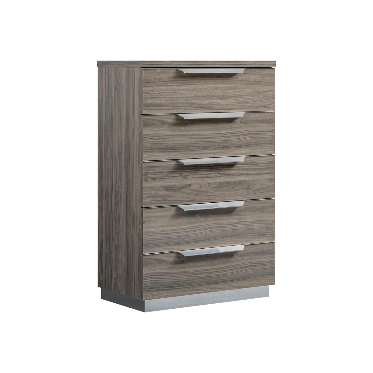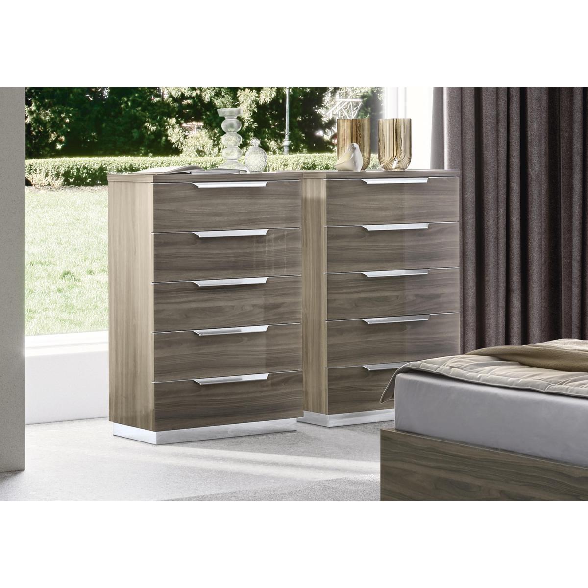 Sophisticated statement design. Luxurious high-gloss finish. Stunning Italian craftsmanship. Meet one of the most beautiful bedroom furniture ranges. The Venezia collection of bed frames, chests of drawers, bedside cabinets, wardrobes and more has a hand-applied lacquered finish that instantly gives any bedroom a high-end glamorous look. And with a wide choice of wardrobes in all sizes as well as large and small storage pieces, it’s a look that’s a perfect fit for any bedroom. Made in Italy, the Venezia bedroom furniture collection is exclusively available at Furniture Village. Smaller bedrooms get the Italian style treatment with this narrow 5-drawer chest – super-spacious storage and a gorgeous finish in a smaller footprint. Why you'll love it. Small yet stylish bedroom? This beautiful 5-drawer narrow chest is the perfect fit. Distinctive glam style. Gorgeous high-gloss grey lacquered finish is hand-applied. Stands on a stainless steel plinth. Elegant chrome-effect metal drawer handles and drawer trim. Also offered in a silver birch finish. Beautifully crafted in Italy and exclusive to Furniture Village. This 5-drawer narrow chest is part of the Venezia bedroom range. What you need to know. Drawers are soft-closing. This piece’s lacquered finish is 4 layers deep, the result of a unique high-tech process. Please note that the lacquered finish may show surface scratches under certain lighting. Love the look? Be sure to explore our Venezia dining collection. WARNING!. Furniture can tip over unexpectedly and cause injury. This item must be fixed to a wall using the anti-tip kit provided. Be sure to use the correct wall fixings suitable for the walls in your home. Furniture Village is not able to fix anti-tip devices for you. Seek professional advice if you are unsure.