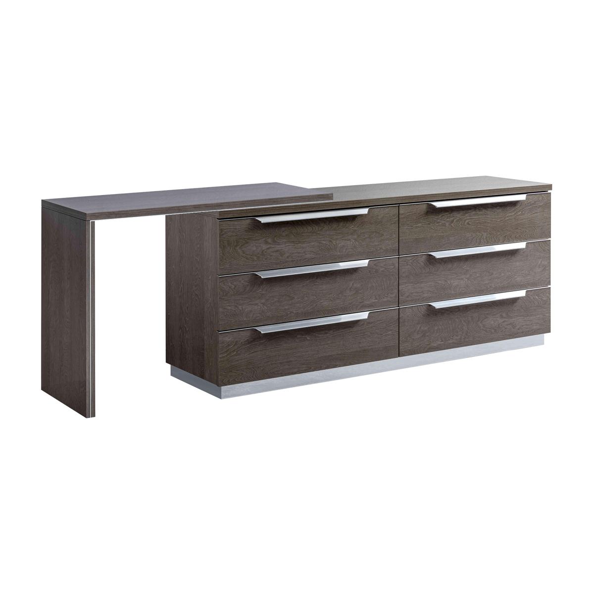 Sophisticated statement design. Luxurious high-gloss finish. Stunning Italian craftsmanship. Meet one of the most beautiful bedroom furniture ranges. The Venezia collection of bed frames, chests of drawers, bedside cabinets, wardrobes and more has a hand-applied lacquered finish that instantly gives any bedroom a high-end glamorous look. And with a wide choice of wardrobes in all sizes as well as large and small storage pieces, it’s a look that’s a perfect fit for any bedroom. Made in Italy, the Venezia bedroom furniture collection is exclusively available at Furniture Village. This large 6-drawer chest of drawers with dresser extension gives you a really fabulous amount of storage and surface space. Perfect for your elegant bedroom. Why you'll love it 6-drawer double chest with dresser extension offers spacious and versatile storage. Distinctive glam style. Gorgeous high-gloss grey lacquered finish is hand-applied. Dresser stands on a stainless steel plinth. Elegant chrome-effect metal drawer handles and accent trim. Also offered in a silver birch finish. Beautifully crafted in Italy and exclusive to Furniture Village. This 6-drawer double chest with dresser extension is part of the Venezia bedroom range. What you need to know Drawers are soft-closing. This piece’s lacquered finish is 4 layers deep, the result of a unique high-tech process. Please note that the lacquered finish may show surface scratches under certain lighting. Love the look? Be sure to explore our Venezia dining collection. WARNING!