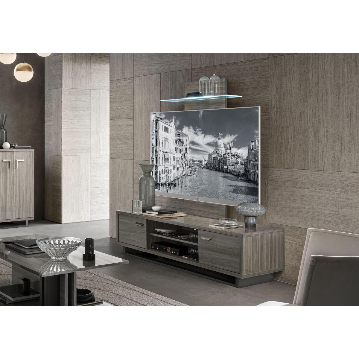 If you see yourself living in luxury, it’s time to get acquainted with our stunning Venezia dining collection. Made in Italy, the range’s dining tables, dining sets, chairs and storage furniture feature a beautiful high-gloss, hand-applied lacquered finish that’s smooth to the touch and a delight to the eyes. And from the tables’ bold pedestal bases to the elegantly upholstered dining chairs, the details are the very definition of showstopping style. A perfect fit whatever the size of your home – the extending dining table is offered in two sizes – this fabulous collection also includes living room furniture. Exclusively available at Furniture Village. This stunning high-gloss TV base is a beautiful way to hide and display your TV and other media equipment. The lacquered finish is hand-applied. Why you'll love it Display your media equipment in style with this striking TV unit base. Distinctive glam style. Gorgeous high-gloss grey lacquered finish is hand-applied. Also offered in a walnut finish. 2 cupboards and an alcove with shelf offer versatile media storage. Beautifully crafted in Italy. Exclusive to Furniture Village. This TV unit base is part of the Venezia dining range. What you need to know 2 single-door cupboards each have 1 adjustable shelf. Cupboard doors are soft closing. The lacquered finish is 4 layers deep, the result of a unique high-tech process. Please note that the lacquered finish may show surface scratches under certain lighting. Love the look? Be sure to explore our Venezia bedroom collection.