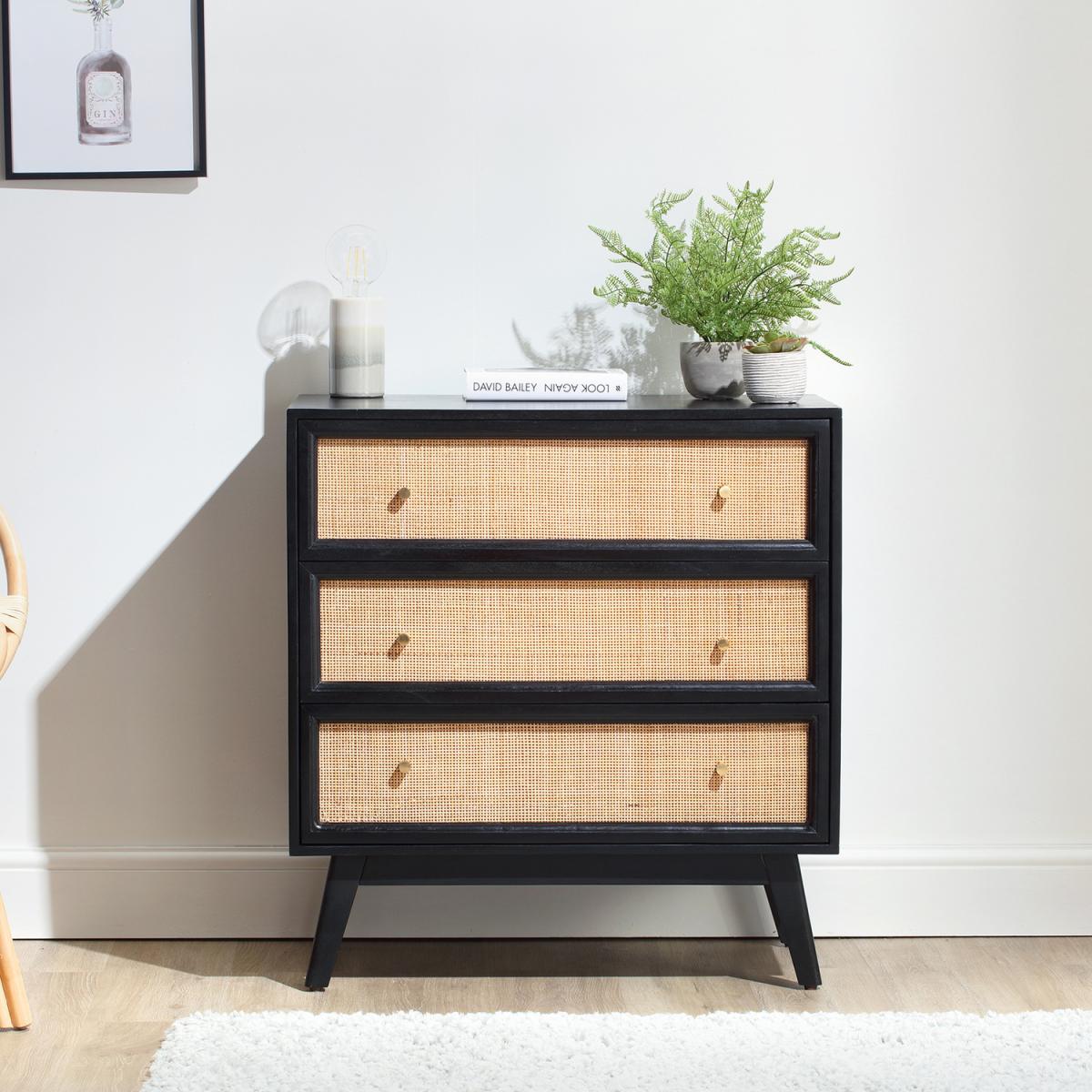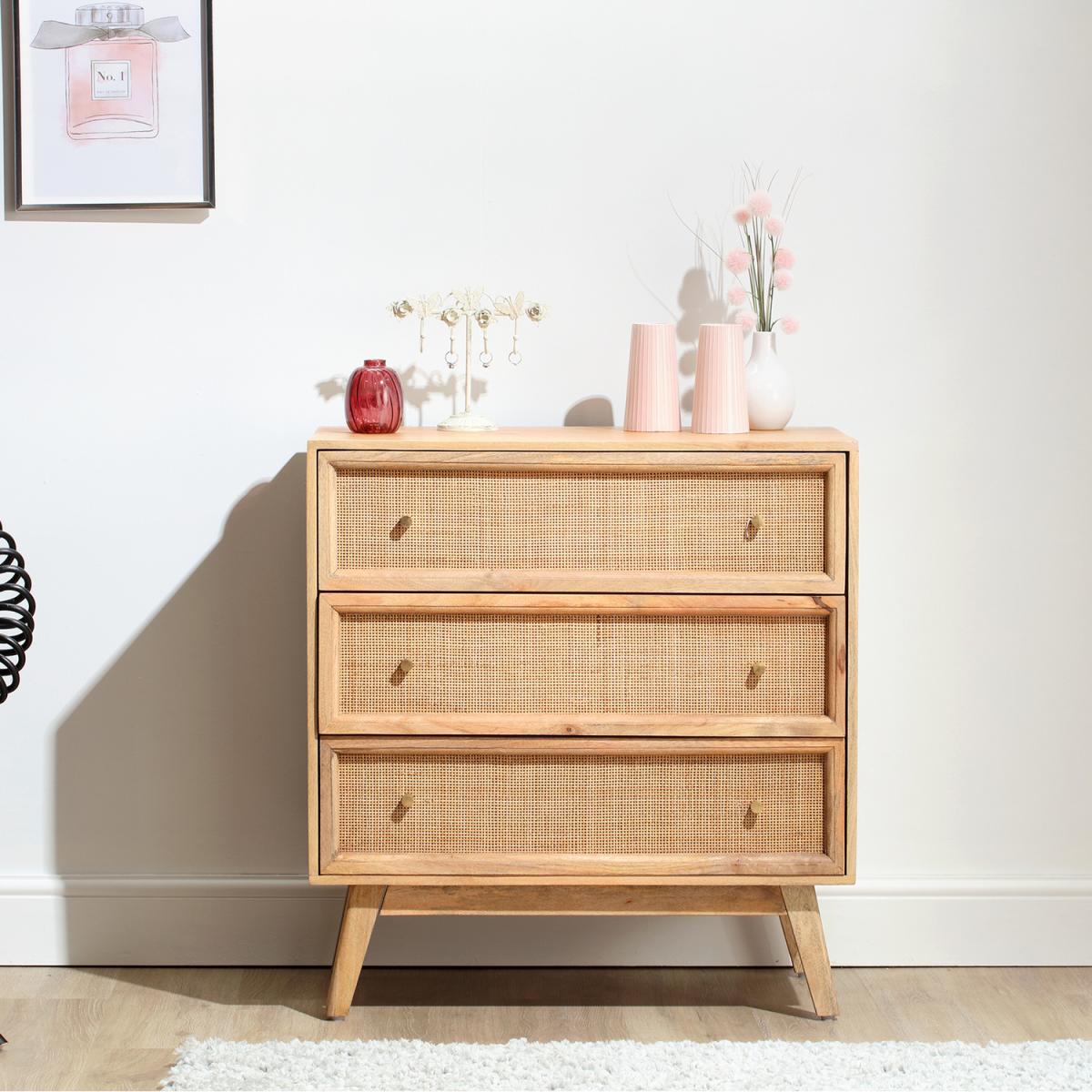 Venice 3 Drawer Chest Unit Rattan Mango Wood - Neutral