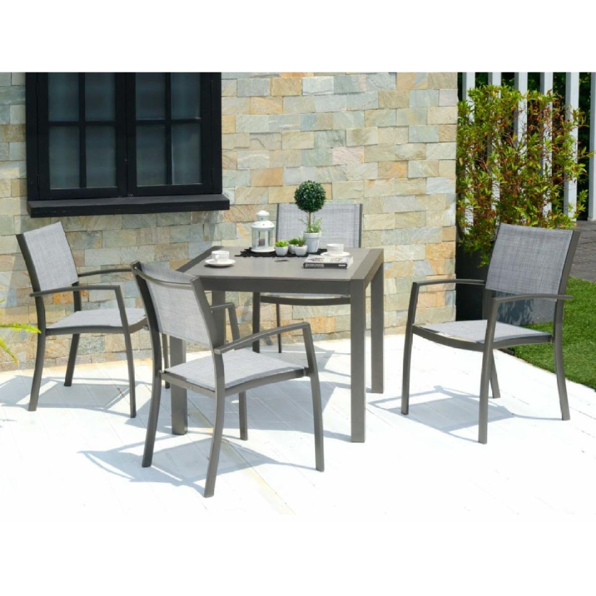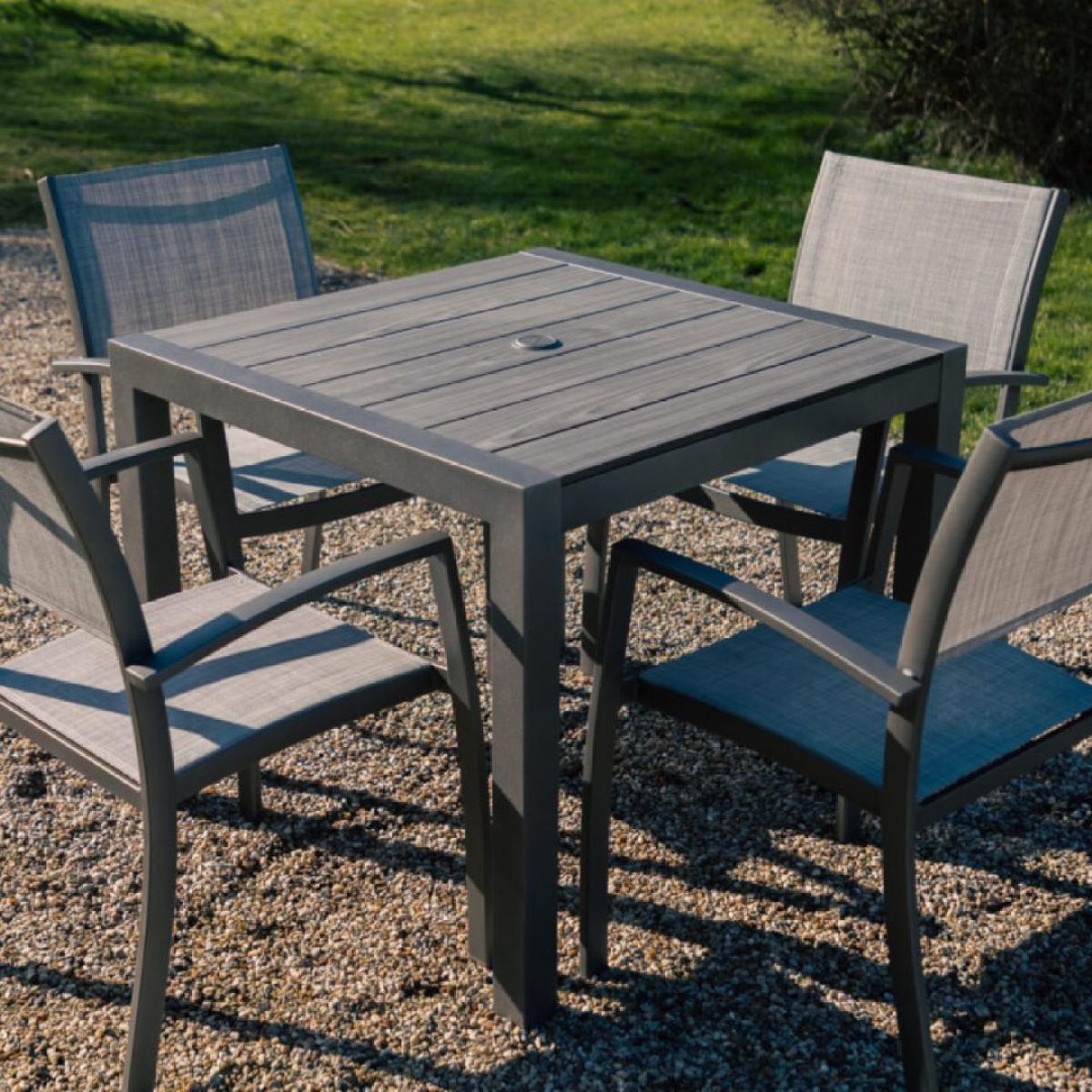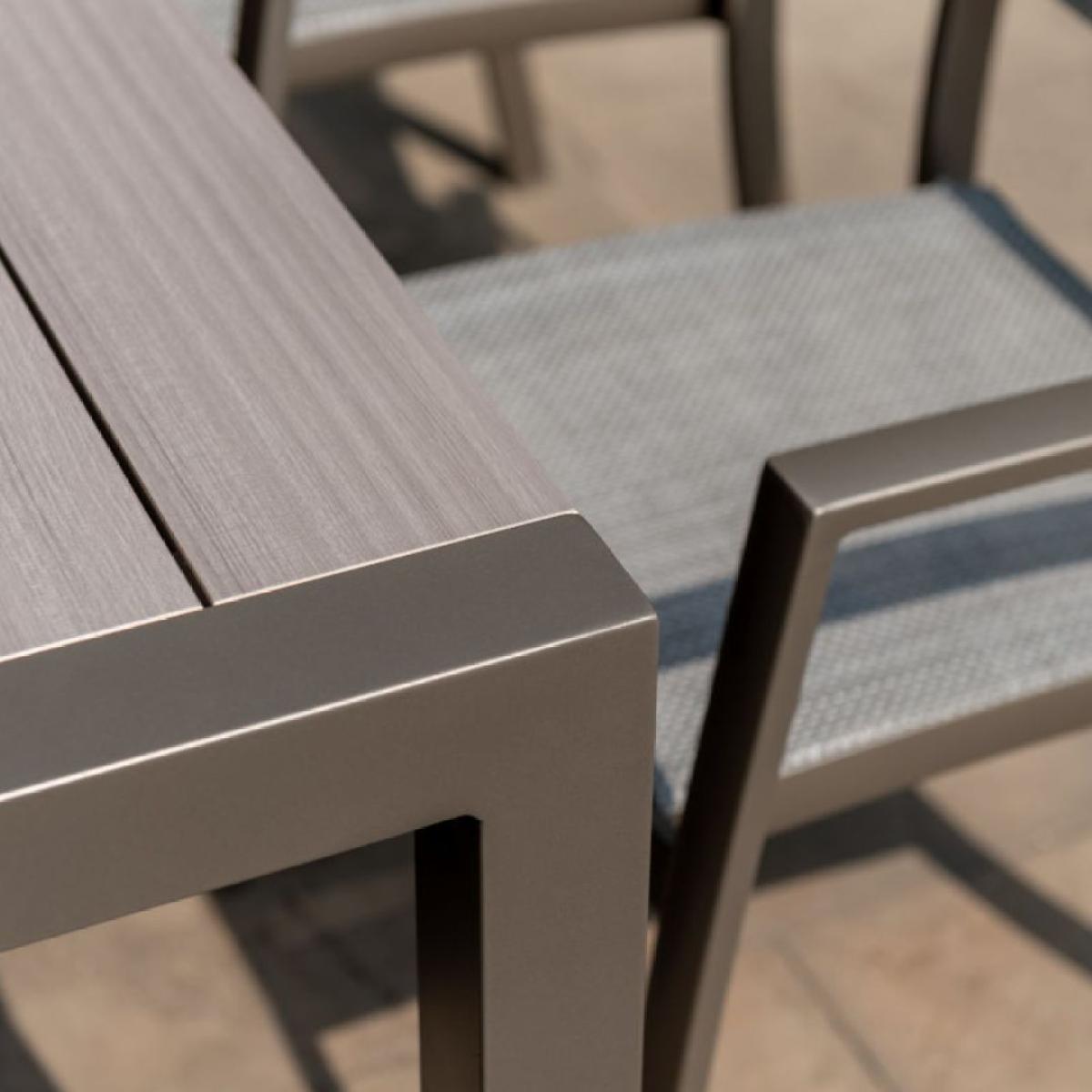The Venice 4 seat outdoor dining set is an elegeant addition to your garden decor, perfect for hosting friends and family. The carver chair uses an aluminium frame with a Weather-net seat and back, which provides maintenance free comfort and a sleek design. The 4-seater dining table pairs an aluminium frame with stylish slats to give an elegant design that will last well in the British weather. The Venice 4 seat outdoor dining set is an elegeant addition to your garden decor, perfect for hosting friends and family. The carver chair uses an aluminium frame with a Weather-net seat and back, which provides maintenance free comfort and a sleek design. The 4-seater dining table pairs an aluminium frame with stylish slats to give an elegant design that will last well in the British weather.