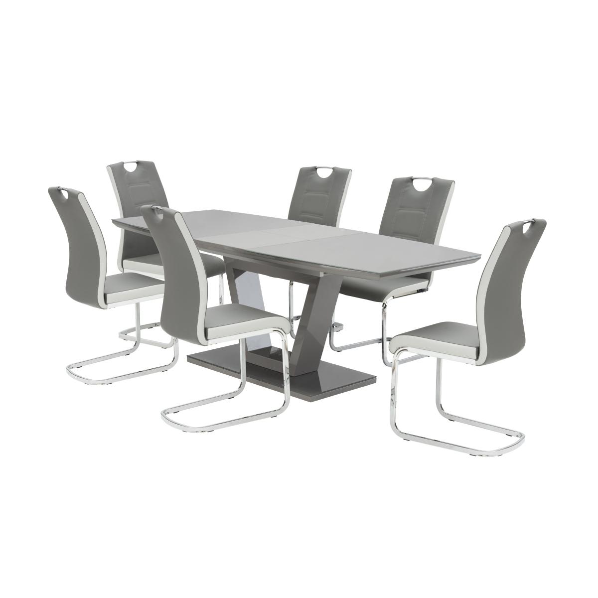 Venice 6-8 Seater Rectangular Extendable Glass Top Dining Table, Grey Grey