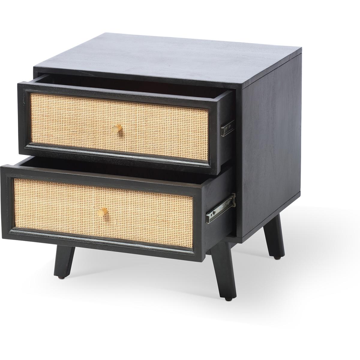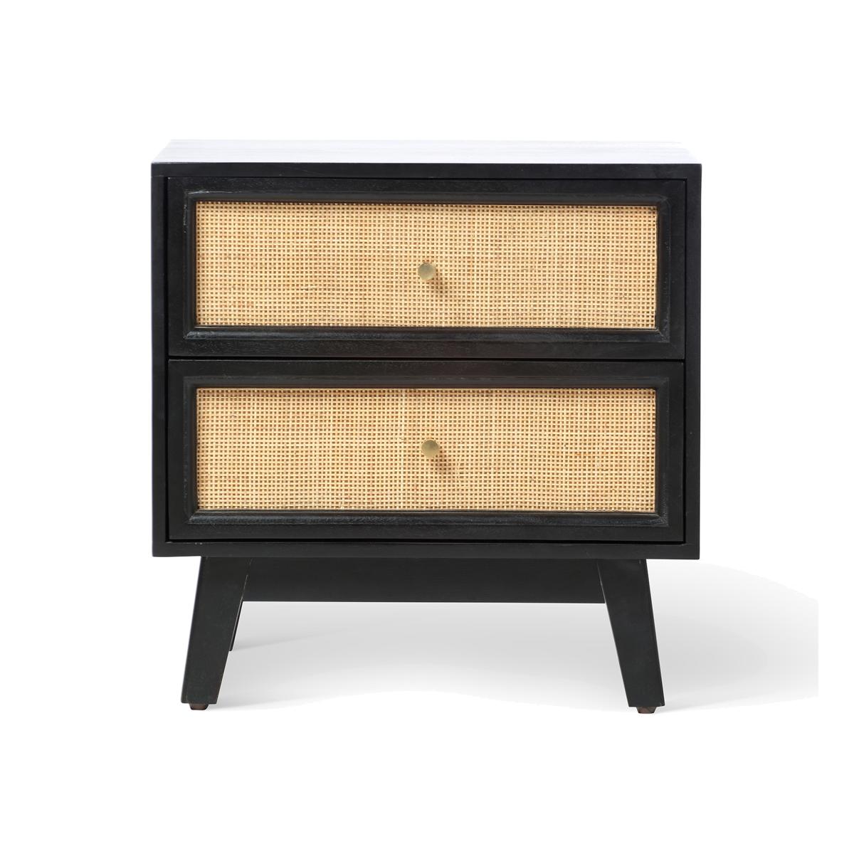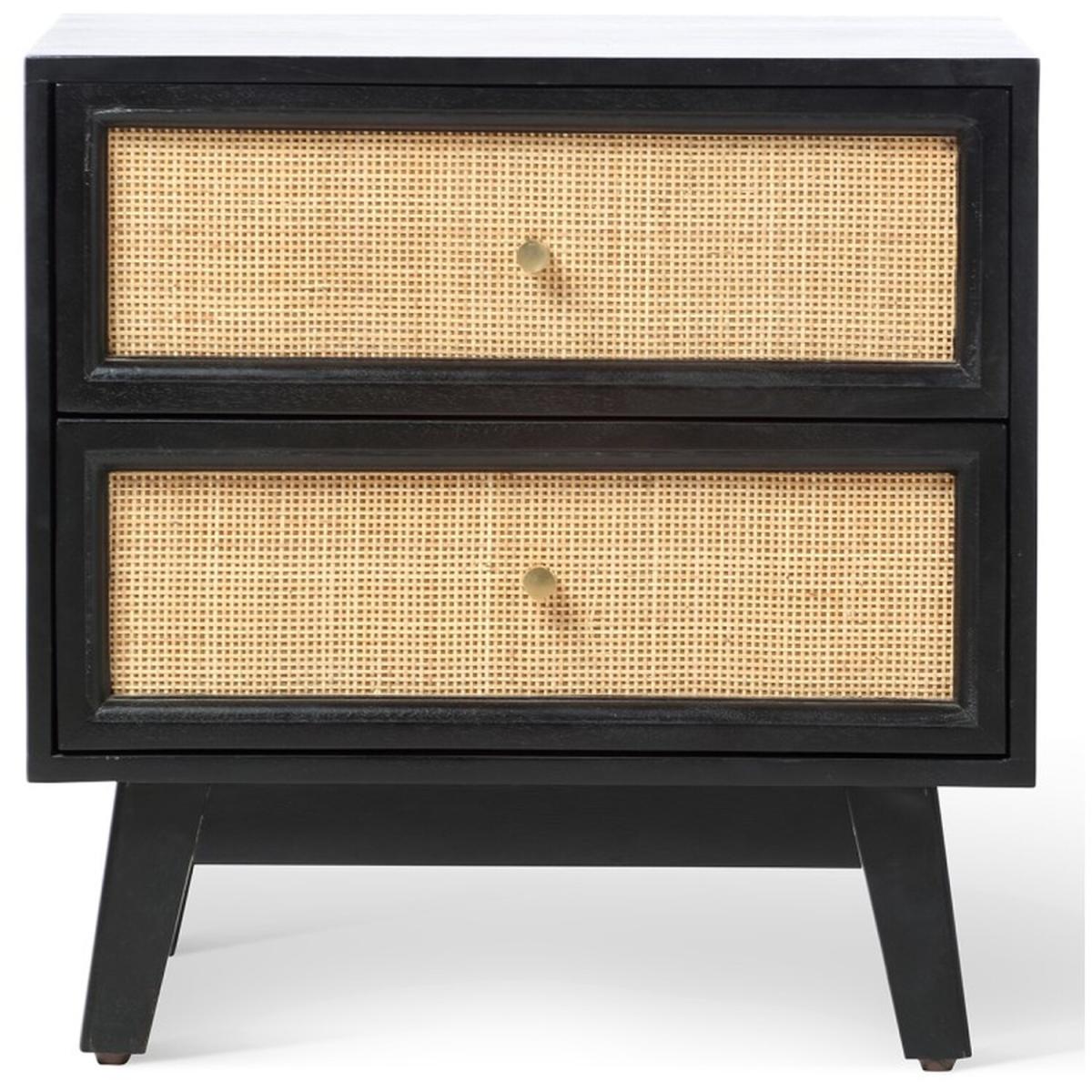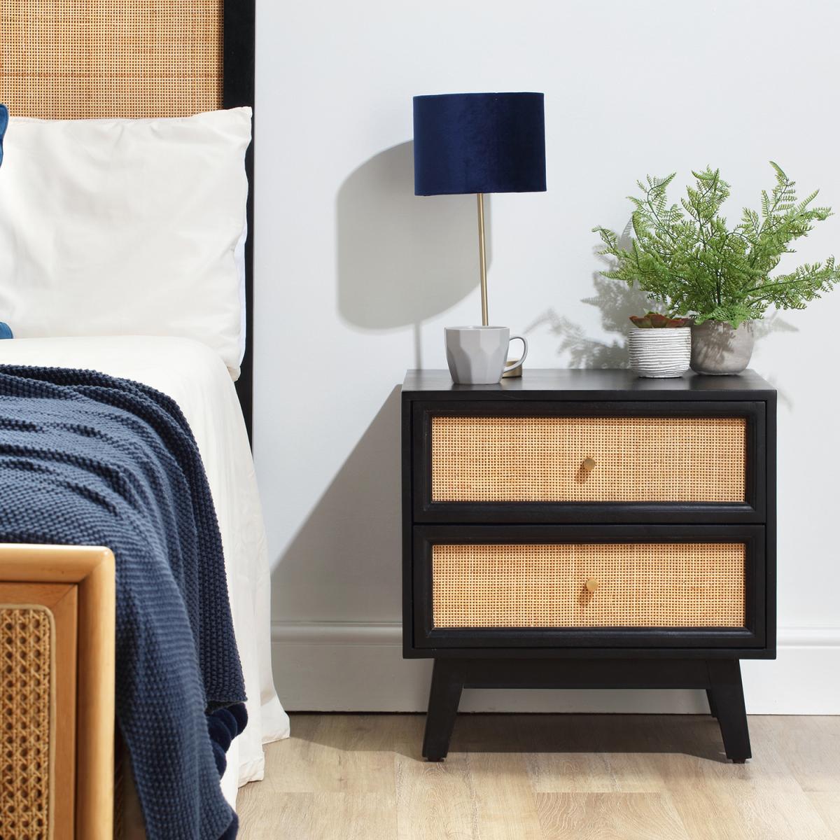 Venice Bedside Table 2 Drawers Rattan Mango Wood - Black with Natural Webbing