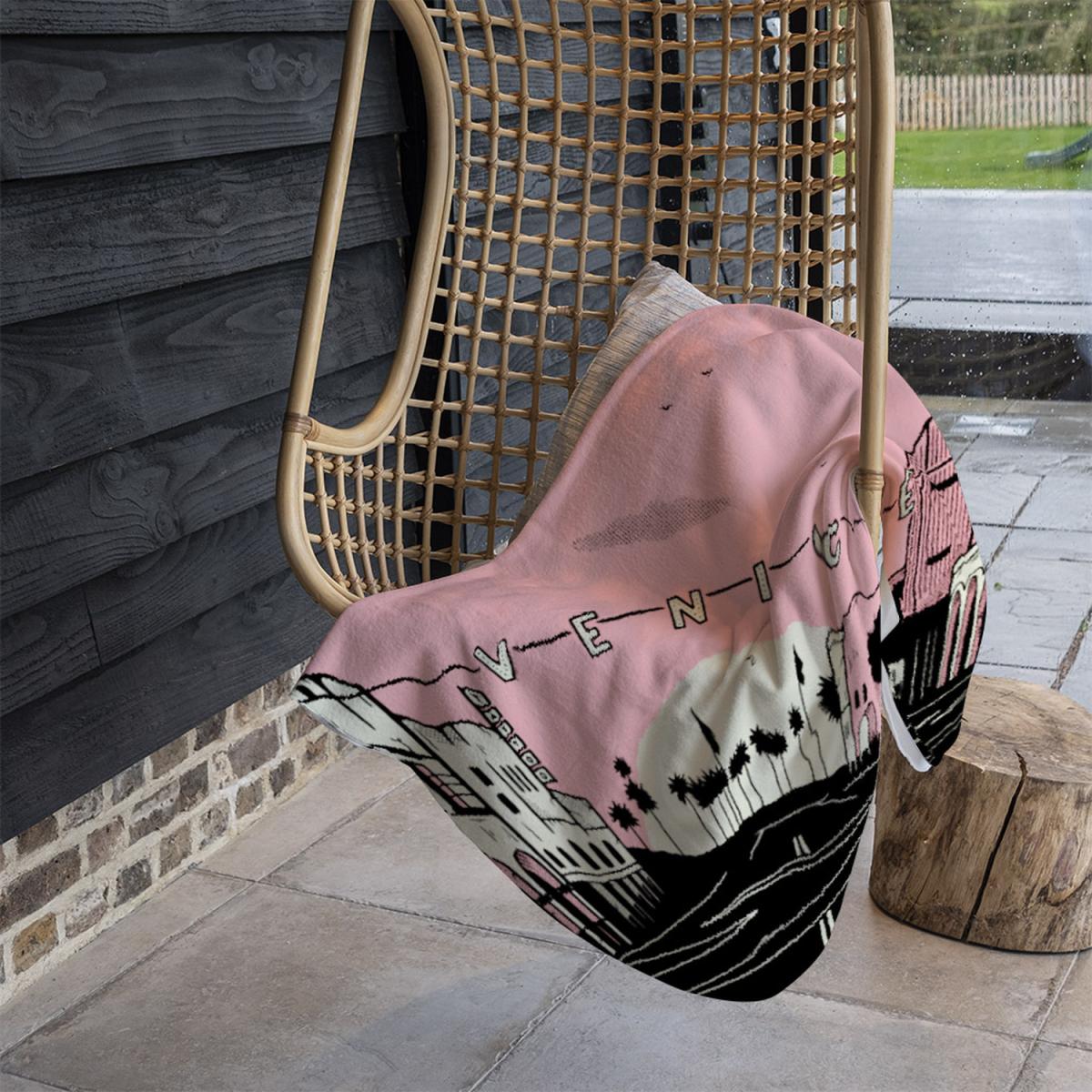 I love this throw for its vibrant, sunset-inspired pink tone, which instantly adds warmth and colour to both contemporary and coastal interiors. It works particularly well layered over a neutral sofa or bed, where it can serve as a statement piece, or draped casually for a relaxed, inviting vibe. Practical styling tips include pairing the blanket with textured cushions or alongside wooden or rattan furniture to enhance its organic feel. Its bold design also makes it perfect for outdoor verandas or patios, creating a cosy yet stylish touch for outdoor lounging areas.