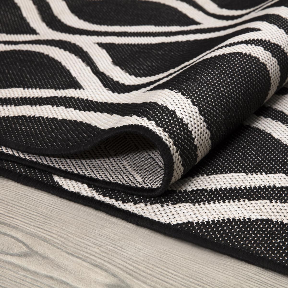 The Venice outdoor rug in black is a versatile piece that works well in both indoor and outdoor settings, adding a contemporary edge to patios, balconies, or indoor living spaces. I love its bold geometric pattern, which can anchor a seating area or define a pathway with a modern touch. This rug is particularly practical because of its durability and resistance to the elements, making it ideal for high-traffic or outdoor use. When styling, consider pairing it with neutral or monochrome furnishings to highlight its pattern, or add vibrant cushions and throws to bring colour into your space. It's a great way to introduce texture and pattern without overwhelming the overall aesthetic.