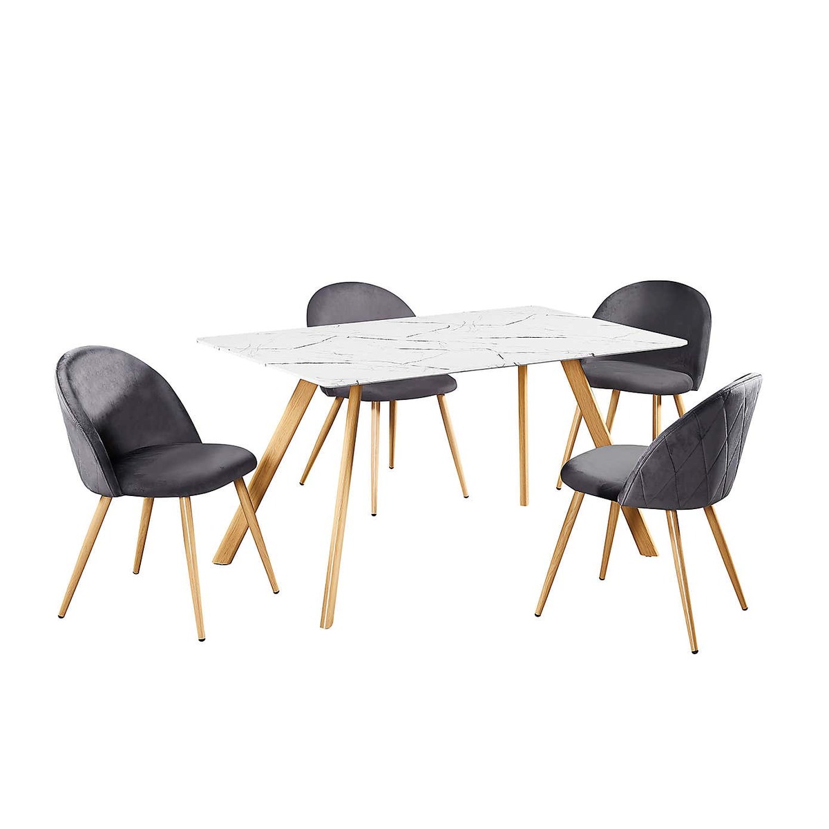 Featuring a marble effect, the Venice table instantly gives your dining area a modern, contemporary feel. Pair this table with our Venice chair, upholstered in velvet to complete the look.
