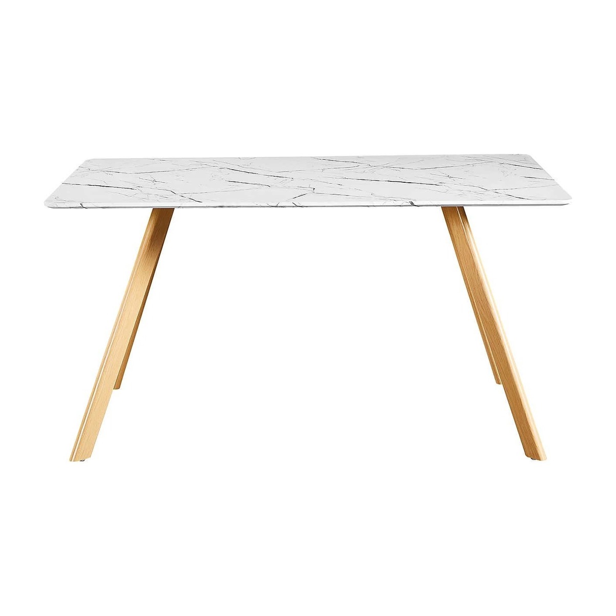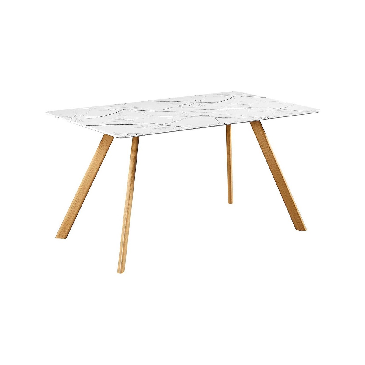 I love this marble-effect dining table for its sleek, contemporary look and versatile appeal. Its crisp white finish makes it a great centrepiece in both modern minimalistic and Scandinavian-inspired interiors, adding a touch of elegance without overwhelming the space. It works particularly well in open-plan kitchens or dining areas where it can be matched with light wood or monochrome accessories. For styling tips, consider pairing it with neutral or pastel seating to soften the look, or go bold with coloured or patterned chairs for an eclectic vibe. Due to its practical design, it’s also suitable for everyday use, and its durable surface makes it a smart choice for family households or entertaining guests.