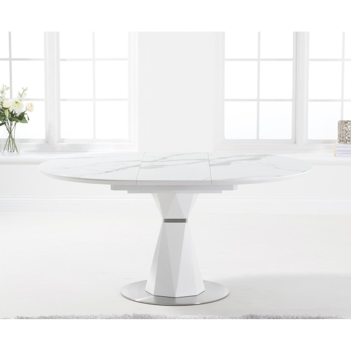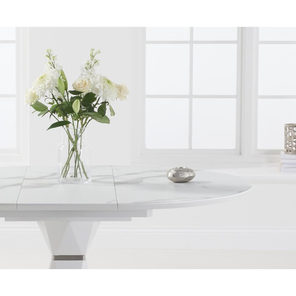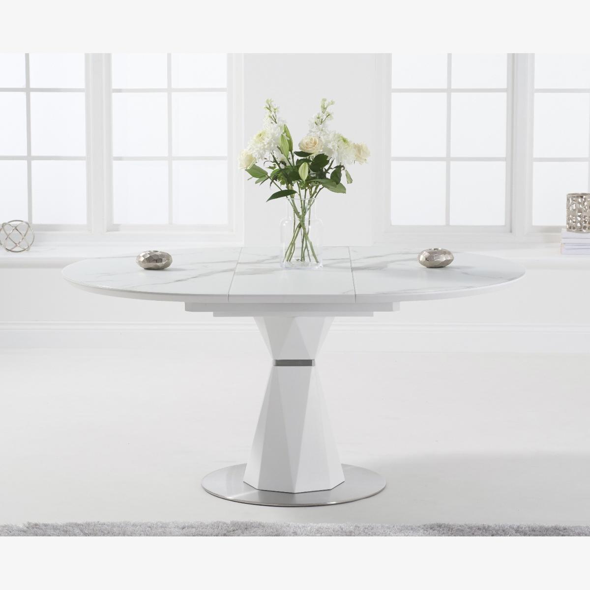 The modern Venosa collection features sleek extending tables with white matt, marble-look finishes and metal bases. Ideal for contemporary dining spaces.