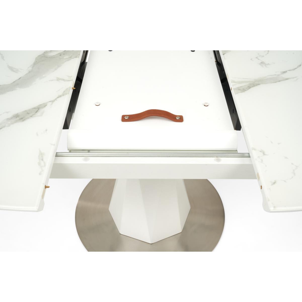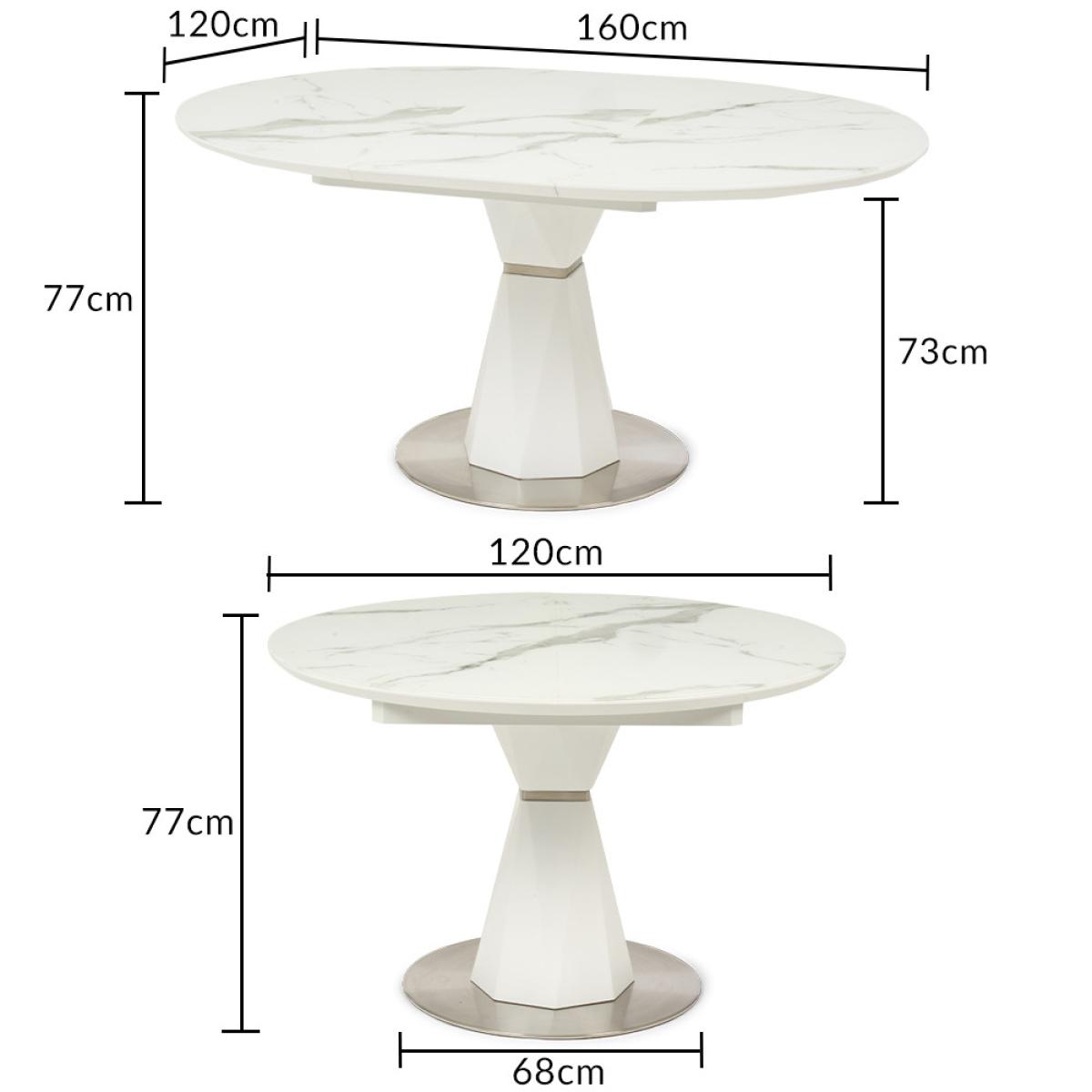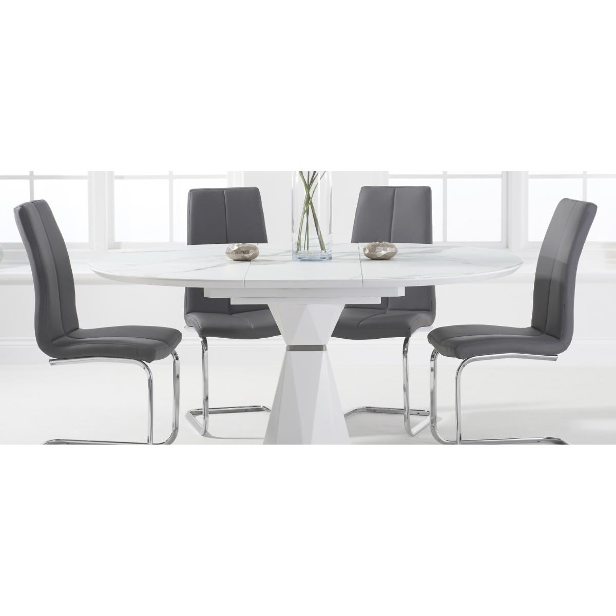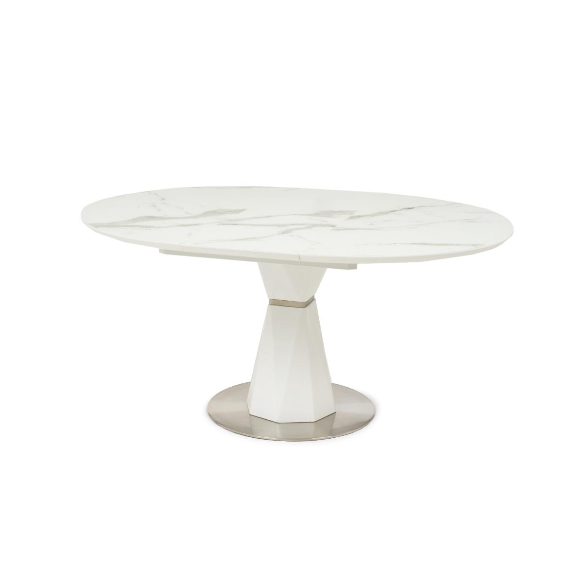The modern Venosa collection features sleek extending tables with white matt, marble-look finishes and metal bases. Ideal for contemporary dining spaces.