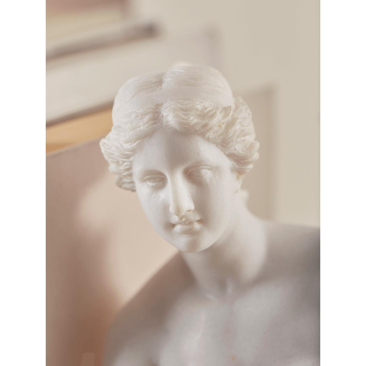 The precedence of architectural objects in a scheme adds atmosphere and a touch of romanticism. The blanched marble look of our perfectly scaled classical figures will add distinction and flair to your bookshelf.