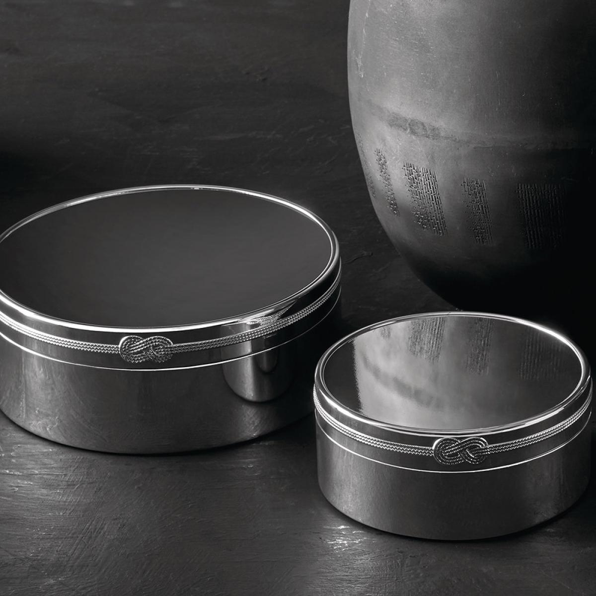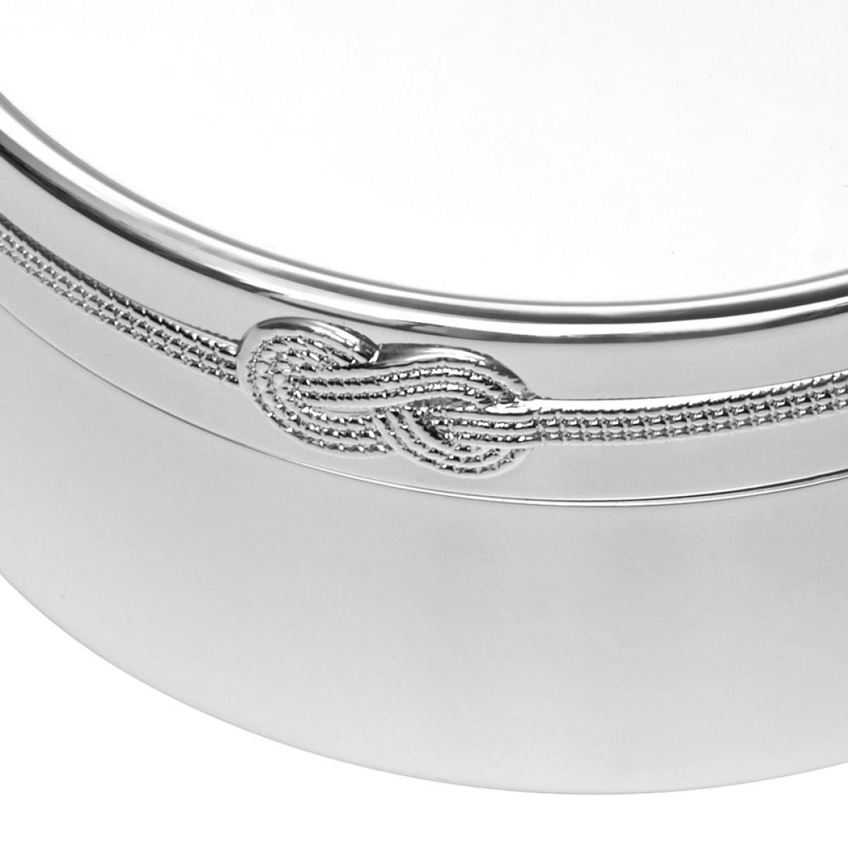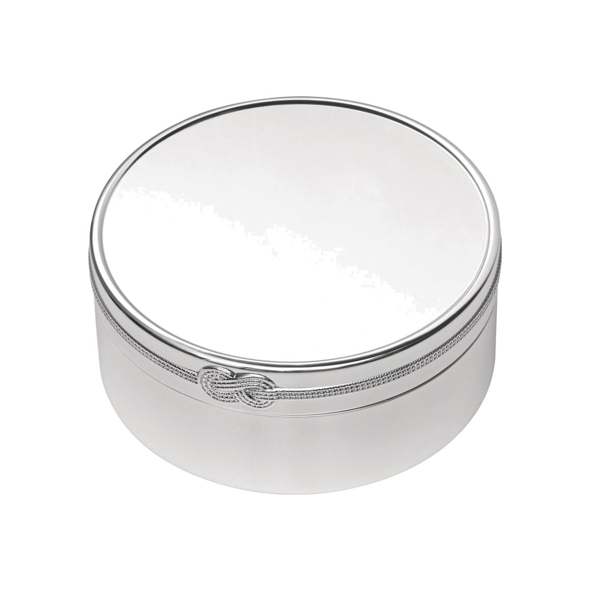 Store precious items safely with this Infinity trinket box from Vera Wang for Wedgwood. Crafted from gleaming silver plate, this trinket box is a beautiful piece for bedside tables and dressing tables. With a lid adorned with a subtle rope pattern around the edges and finished with an infinity knot design representing eternal love. Part of the fabulous With Love collection created by the leading bridal designer, there are more exquisite pieces available to treat someone special.