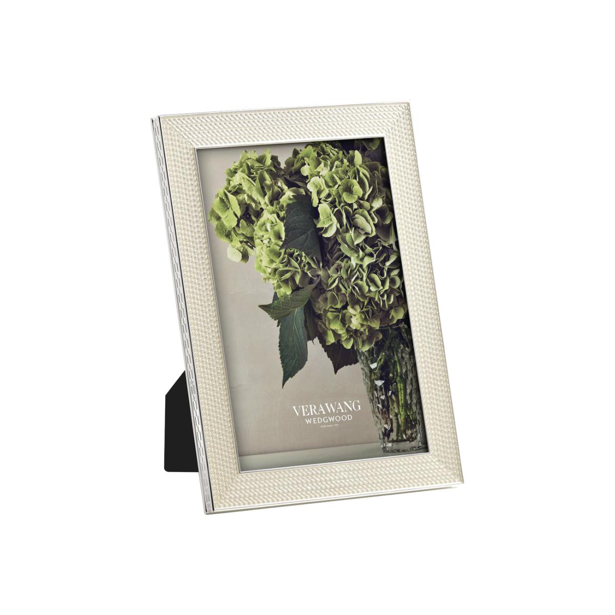 Give a gift they will cherish for a lifetime with this With Love photo frame from Vera Wang for Wedgwood. Adorned with a striking interlocking ring design, it symbolises the eternity of love romance and commitment. Made from gleaming silver plate with a warm pearlescent finish, this photo frame is available in three sizes to hold all manner of treasured memories. With more items available in the romantic With Love collection, you can treat someone special or create a chic coordinated look in your own home.