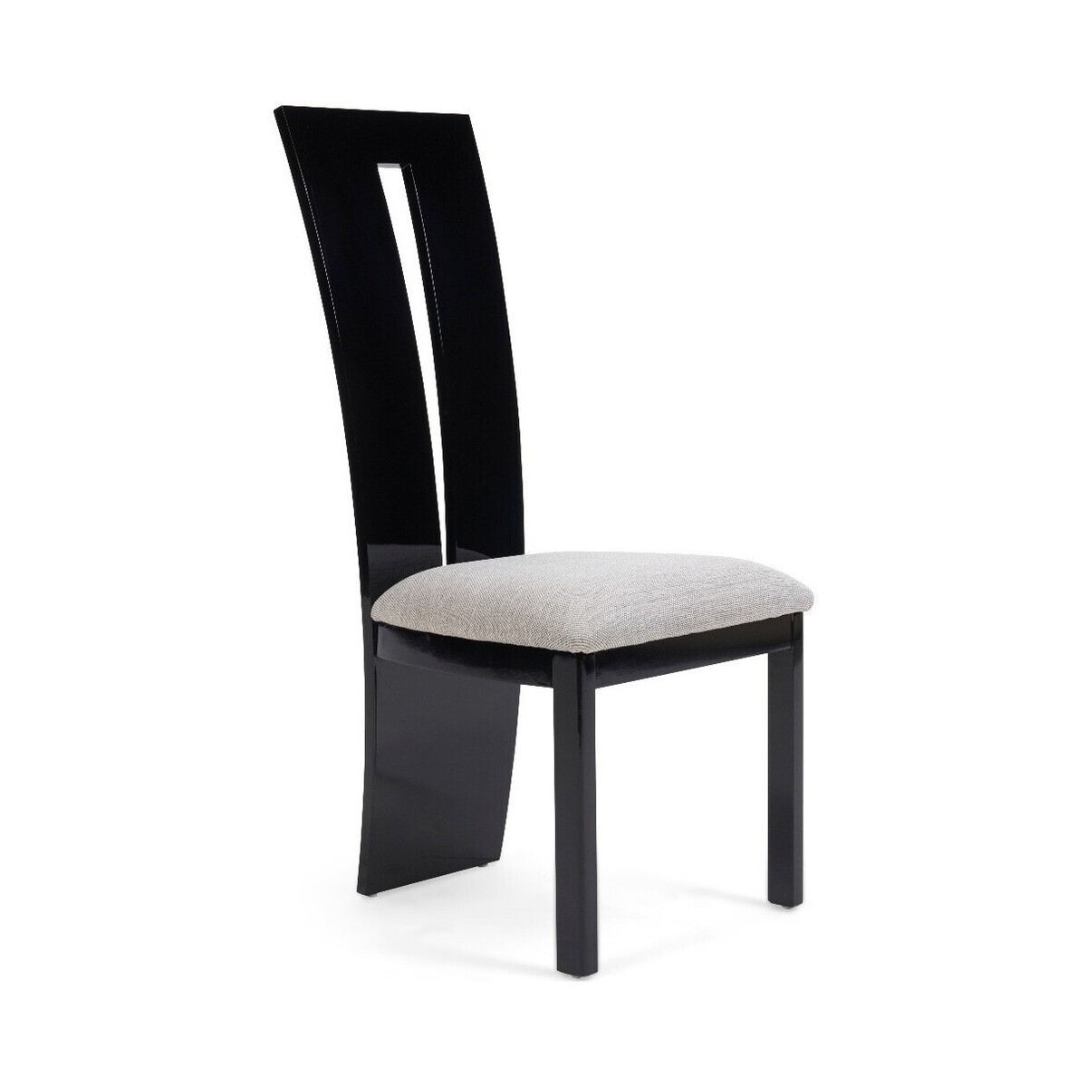 I love this chair for its sleek black finish and strong wooden silhouette, making it a versatile choice across various interior styles. It works particularly well in modern and contemporary dining spaces, especially when paired with light or neutral tabletops to create a striking contrast. The neutral upholstered seat adds comfort without detracting from its minimalist appeal. For styling tips, consider mixing it with textured dining tables or adding colourful accessories like cushions or tableware to introduce personality. Its robust look also makes it suitable for more eclectic interiors, where it can be paired with other statement pieces for an eclectic, yet cohesive look.