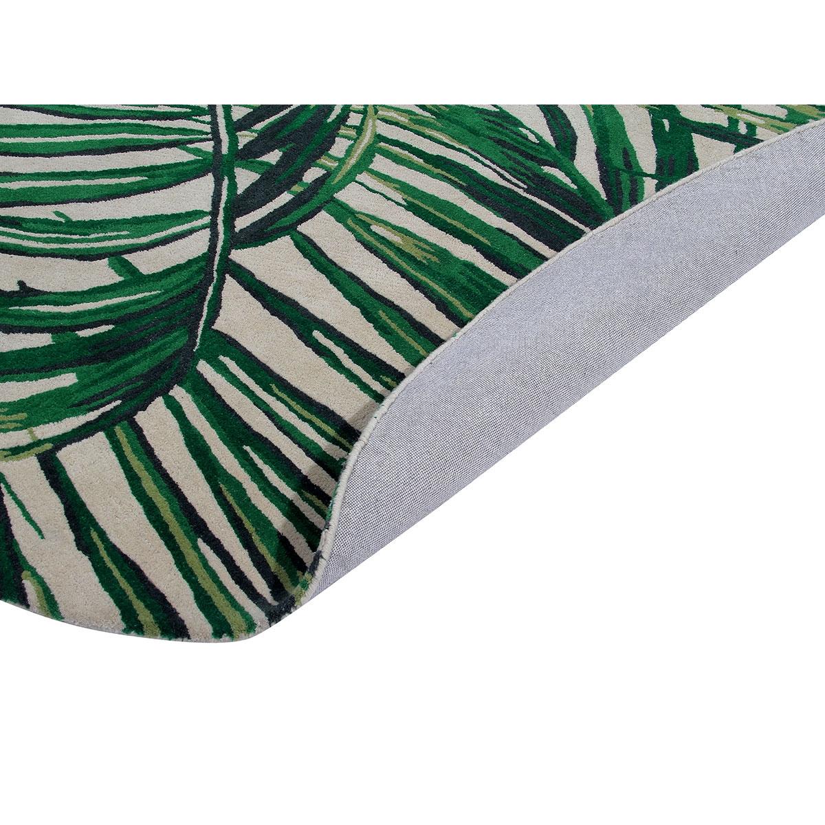 Contemporary design featuring tropical leaves on a neutral base. Hand Tufted 100% Wool. Wool rugs shed fibres during vacuum cleaning and everyday use; this is not a fault but a natural characteristic. Please use only suction type vacuum cleaner as rotating brush vacuum may damage the rug. Spills should be cleaned immediately to help avoid staining- use a clean white absorbent cloth to dab the spillage, avoid scrubbing and chemical cleaners. For deep cleaning use a professional carpet cleaning company- do not dry clean or tumble dry. If loose threads appear carefully trim them with scissors.