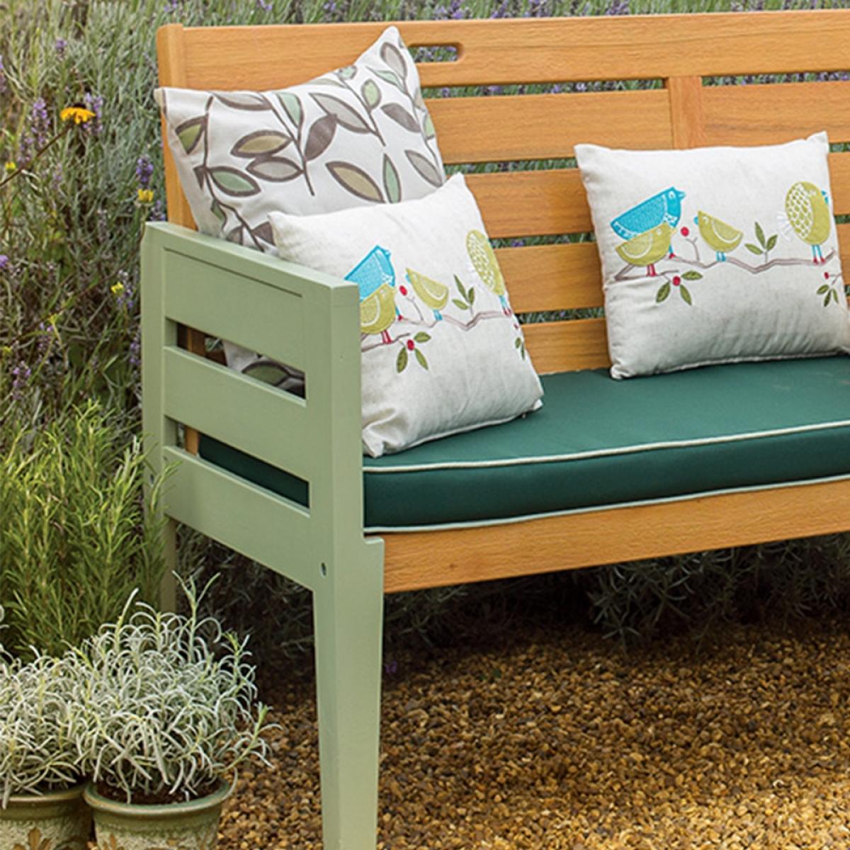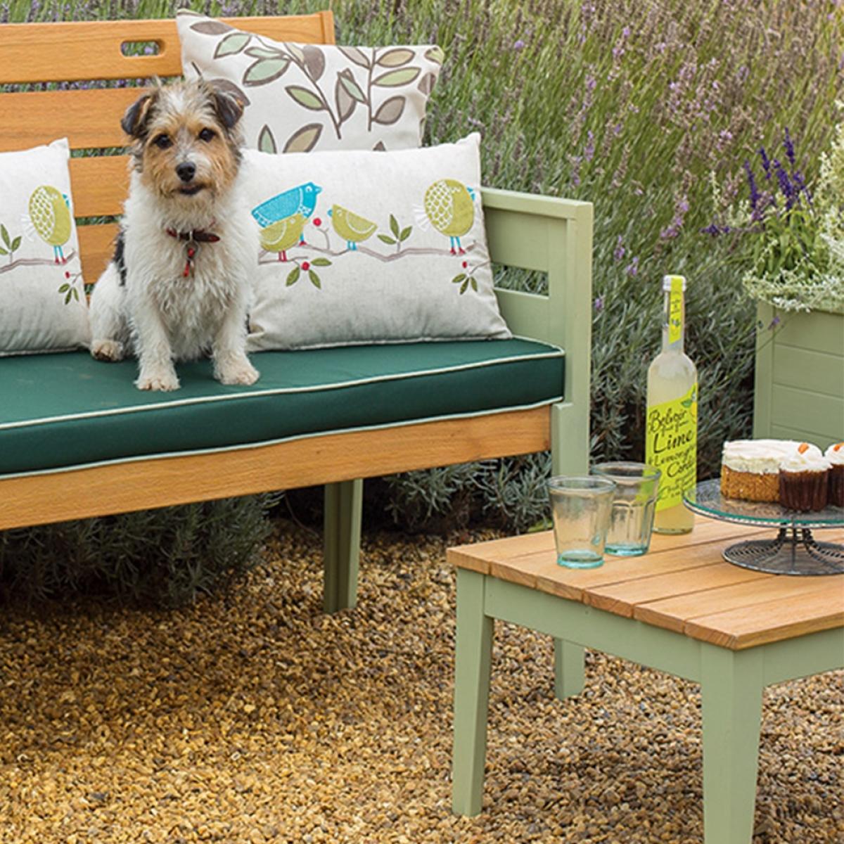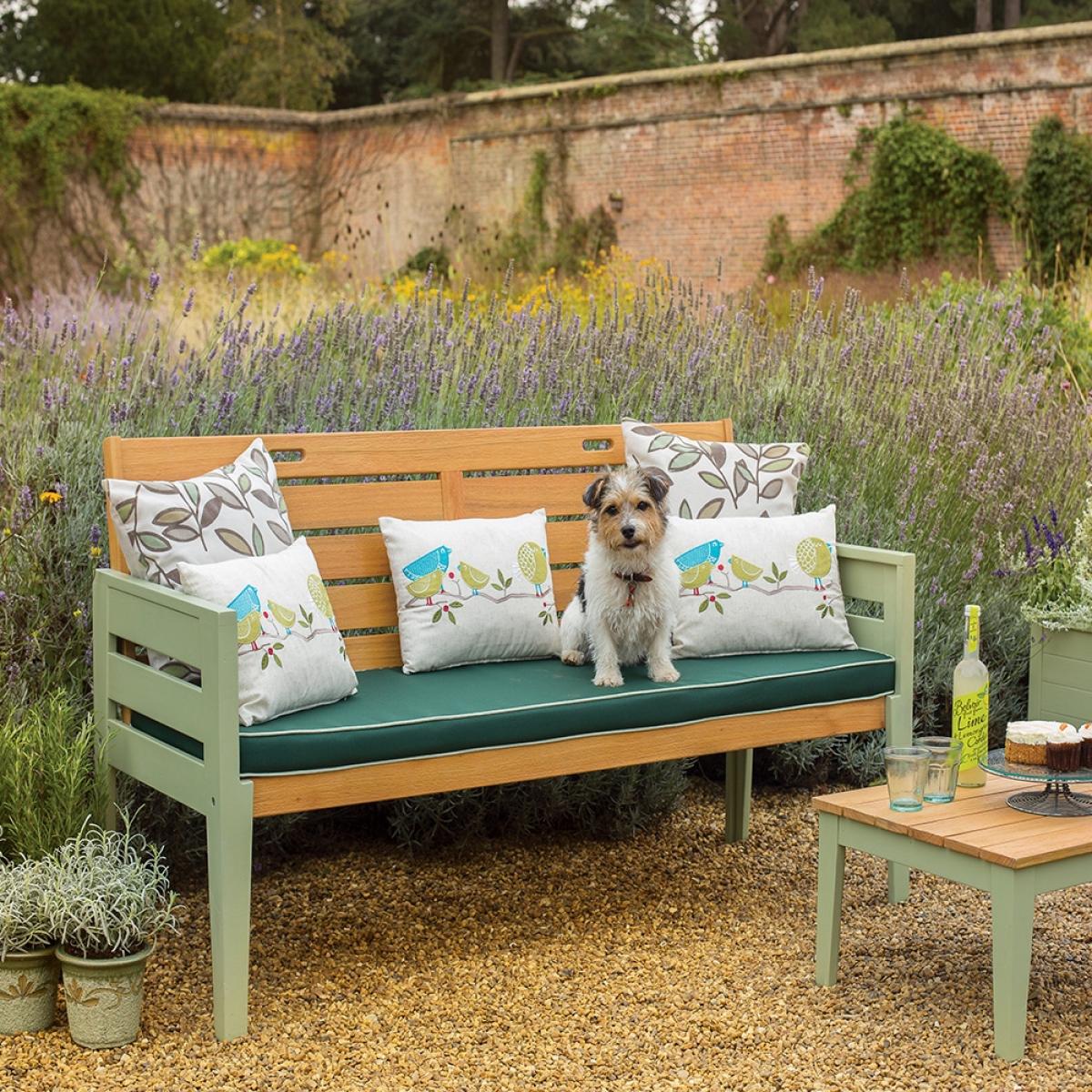 I love this bench for its simple yet classic wooden design, which makes it versatile enough to slot into both traditional and modern outdoor spaces. It works particularly well in cottage gardens or rustic courtyards where its natural wood finish adds warmth, but it can also be painted or stained to complement a more contemporary setting. Practical styling tips include pairing it with colourful or patterned cushions for added comfort and visual interest, as seen here. It’s perfect as a central feature in a garden lounge area or even placed on a terrace with a coffee table nearby. Its sturdy craftsmanship makes it a reliable choice for everyday use, while the clean lines keep it looking fresh year after year.