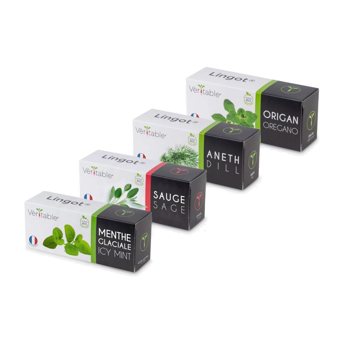 Grow your own classic kitchen herbs to complement Sunday roasts, any time of year, with this set of four from the Veritable Indoor Garden range. This set includes Oregano, Dill, Sage and Icy Mint. Each 'lingot' contains pre-sewn seeds plus a mixture of organic matter and plant food to give you a head start. Simply plug them into a Veritable Indoor Garden (sold separately) and they germinate within one to two weeks. After around four weeks you can start to use the produce and it will continue to provide a harvest for four to six months. It's an easy way to give you fresh kitchen essentials with minimum effort, at any time of the year. Compatible with all Veritable Indoor Gardens. Refund policy We can't offer refunds or exchanges on perishable goods such as flowers and food, unless faulty or not as described.. This does not affect your statutory rights. Please see bottom of page for ingredient information.