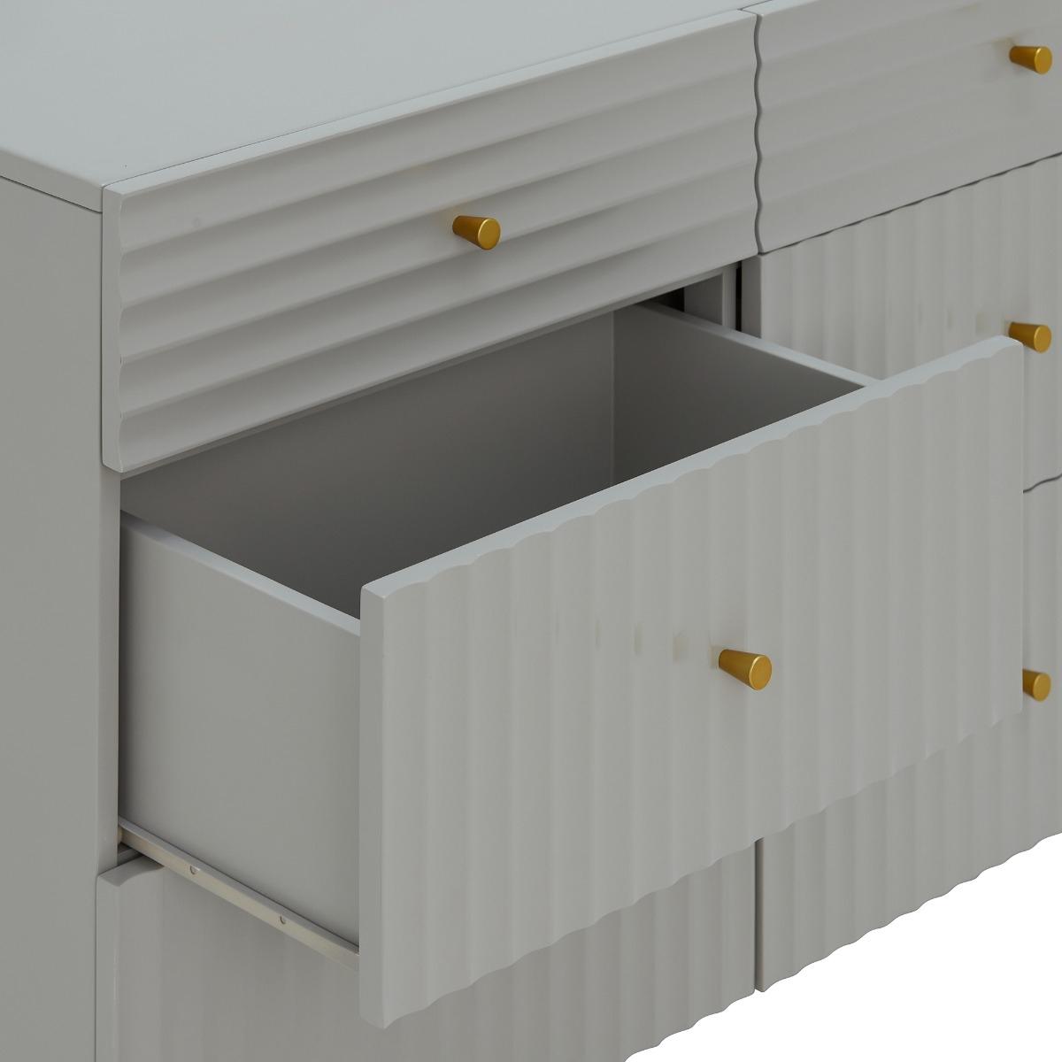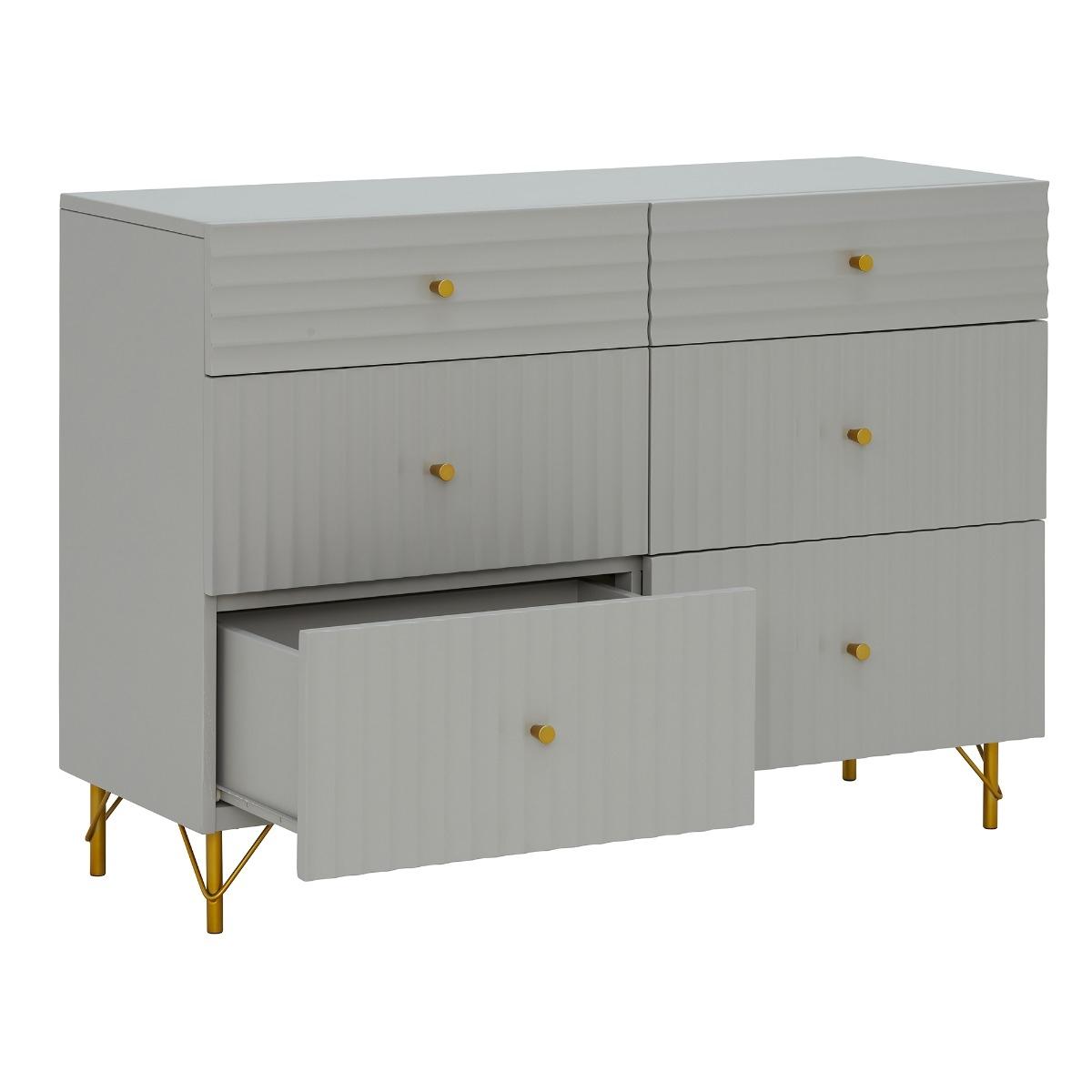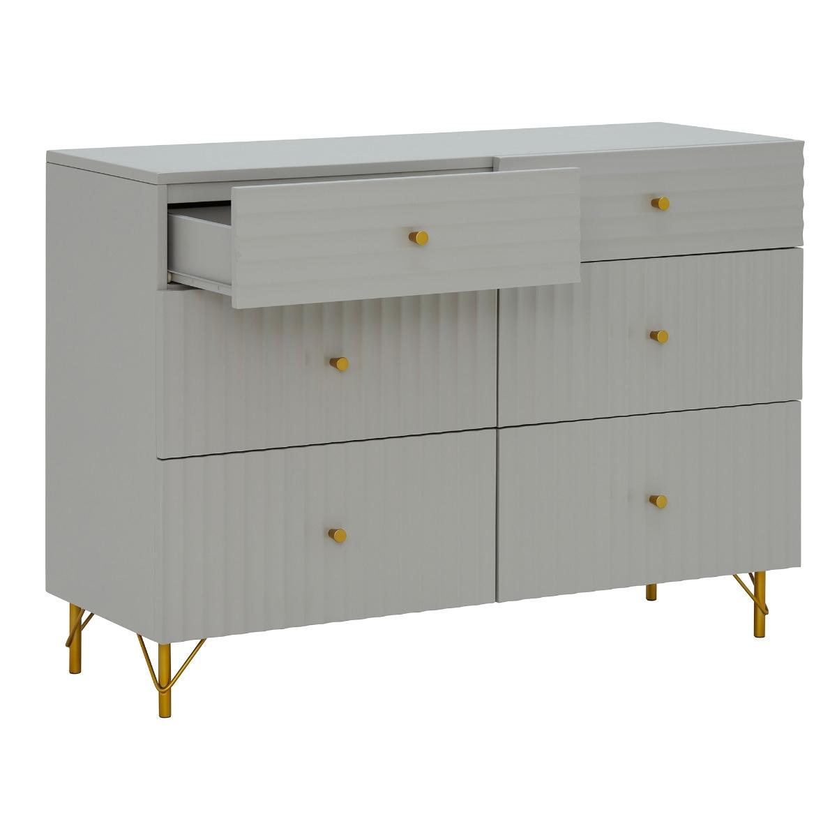 Design. An ideal storage solution for your bedroom or dressing room, the Verity 6 Drawer Wide Chest, is both practical and super stylish. The light grey finish, horizontal and striped detailing, and gold hardware boast sophistication and modern glam with a traditional touch giving your space a new lease of life. The 6 spacious drawers allow you to keep all your garments organized neatly for both a clean space and mind. Explore the Verity range for a cohesive look.