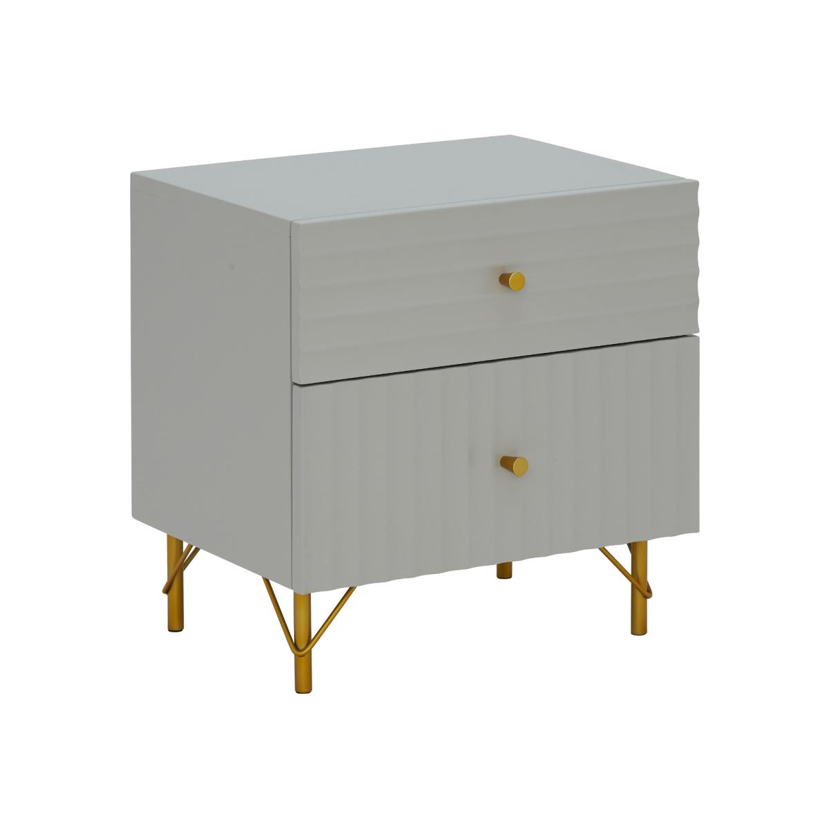 The Verity 2 Drawer Bedside displays light greyhorizontal and vertical striped detailing with minimalisticgold hardware, oozing a chic, contemporary style with a touch of traditional glamour. With 2 spacious drawers, it allows for practical storage and leaves space on the top for a lamp and accessories. Explore the whole Verity range to complete the look.