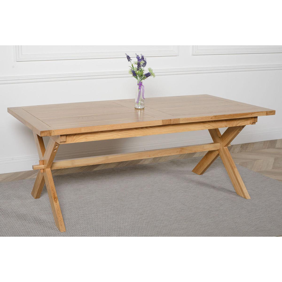 pA stylish dining table for those looking to host dinner for family and friends. The solid oak timbers used in the construction of this 8 seater dining table have been skilfully selected and crafted without the use of mass finger jointing, delivering beautiful, unbroken lines. The fine grain typical of oak ensures that this piece of furniture will age beautifully, developing patina and gracious character in years to come.pp. This beautifully designed refectory table is fitted with a sturdy and easy to use centre extension panel that extends this solid oak table from a 6 seater dining table at 200cm in length, to a comfortable 8 seater dining table configuration at 240cm length. When not in use the extension panel stores away neatly under the table top, perfect for use as a long kitchen table or extending dinner table for the dining room. pp. No lamination, veneer or MDF is used in the construction of this extendable oak dining table. After years of use this large table can be sanded to remove any signs of use and re-lacquered to appear as it did the day it was first delivered, representing true lifetime value.pp The Vermont Solid Oak Extendable Dining Table comes with a full 12 month warranty and 30 day no quibble Money Back Guarantee.p