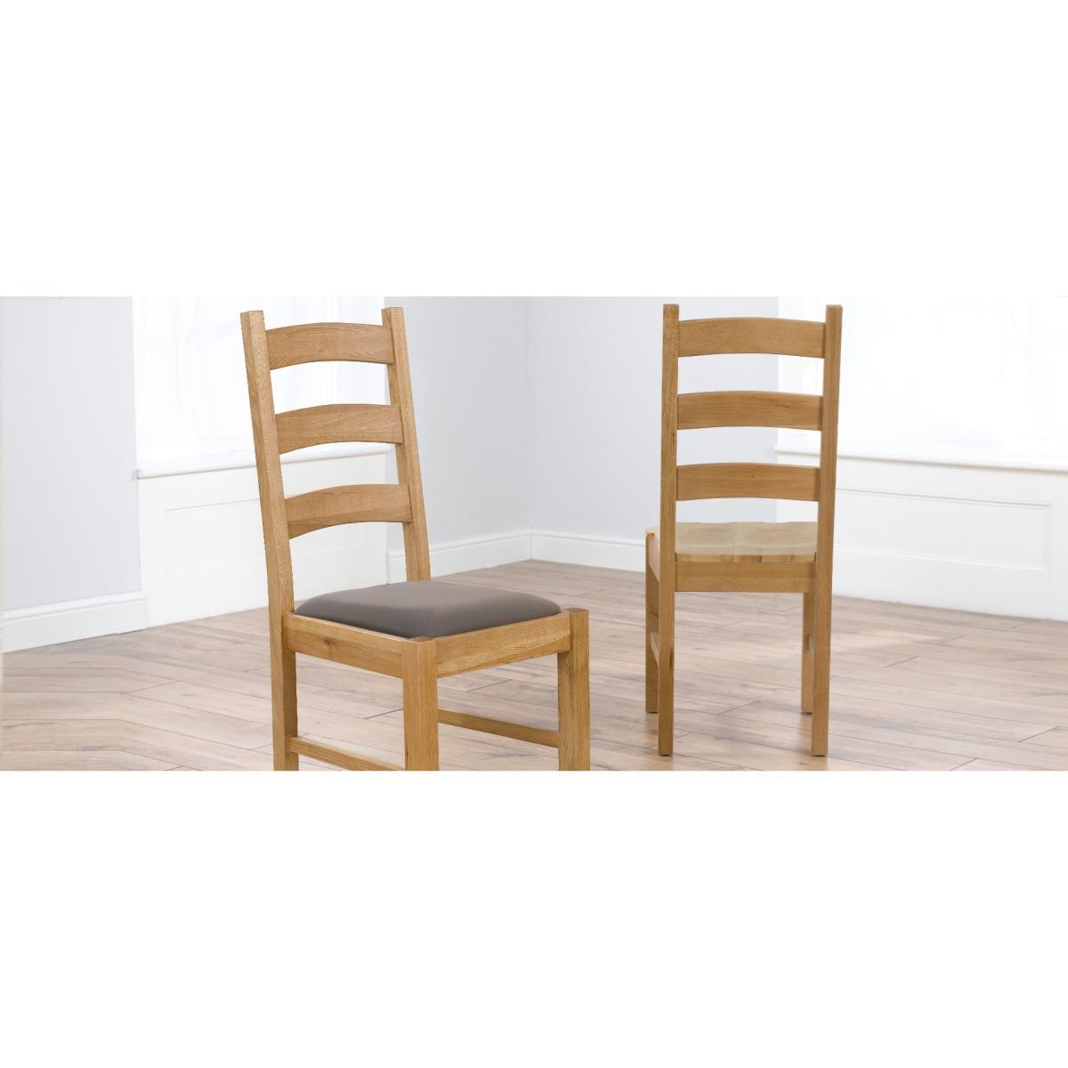 The Vermont Solid Oak Dining Chairs feature a classic design to complement any oak timber dining table. Crafted from solid oak, the chairs feature a traditional laddered backrest and a bevelled oak seat. The Vermont Chairs are complete with a smooth clear protective lacquered finish. Also available in Oak & Grey