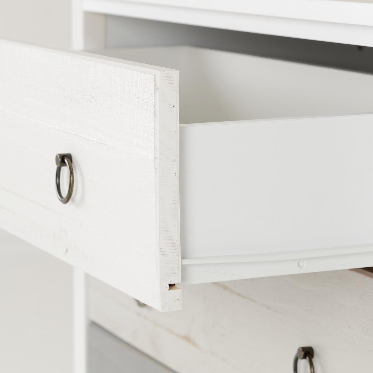 I really like this white dresser - it’s a versatile piece that works well in both modern and coastal interiors, thanks to its clean lines and subtle colour variation in the drawers. The mix of white and muted shades adds a touch of interest without overwhelming the space. It’s practical too, offering ample storage for bedrooms or hallways, and its neutral palette makes it easy to pair with a variety of colour schemes. For styling, I’d recommend keeping the top surface relatively simple, perhaps with a minimal lamp or a few decorative accents, to maintain a fresh look. It can be easily dressed up with colourful or textured accessories if you want to add a more personalised touch.
