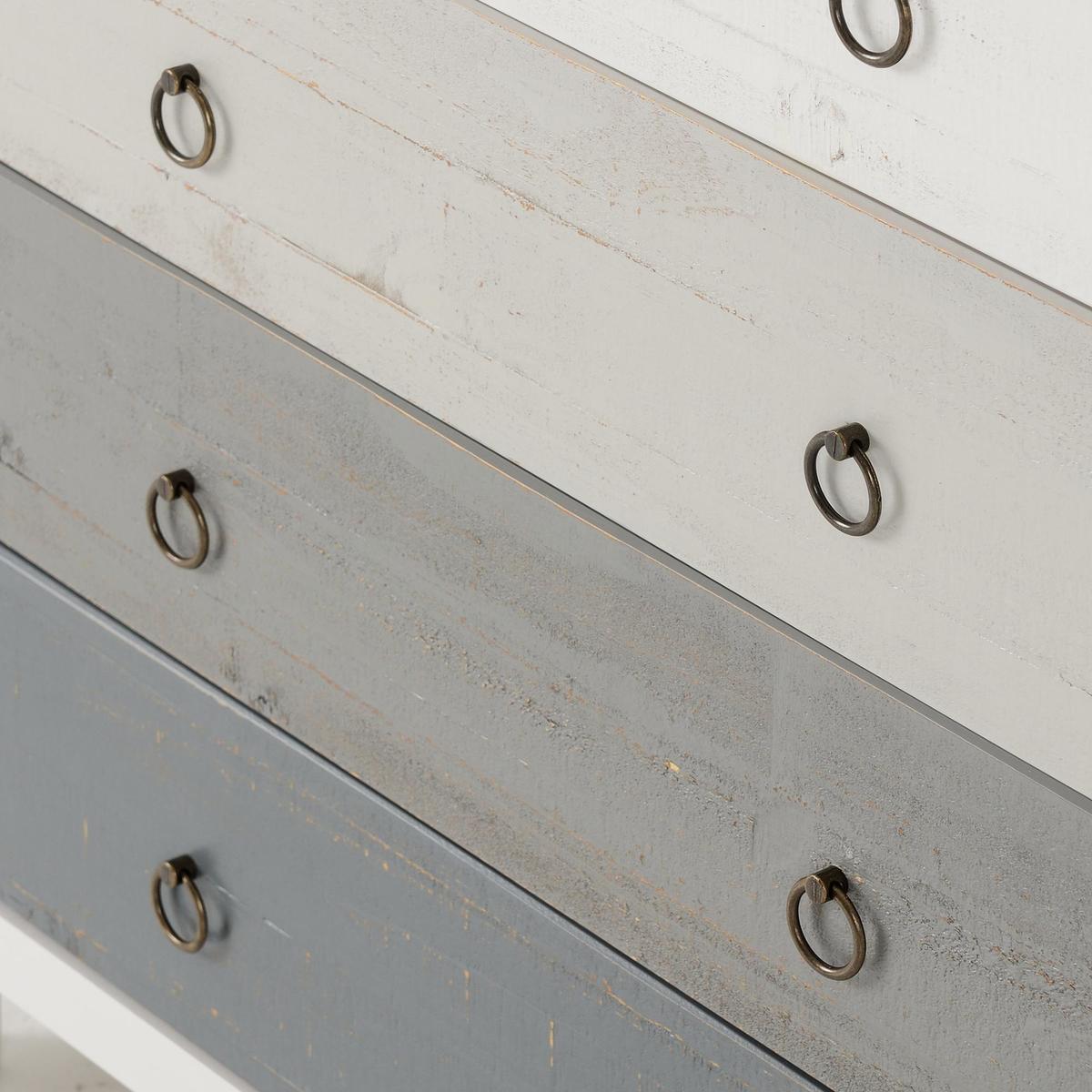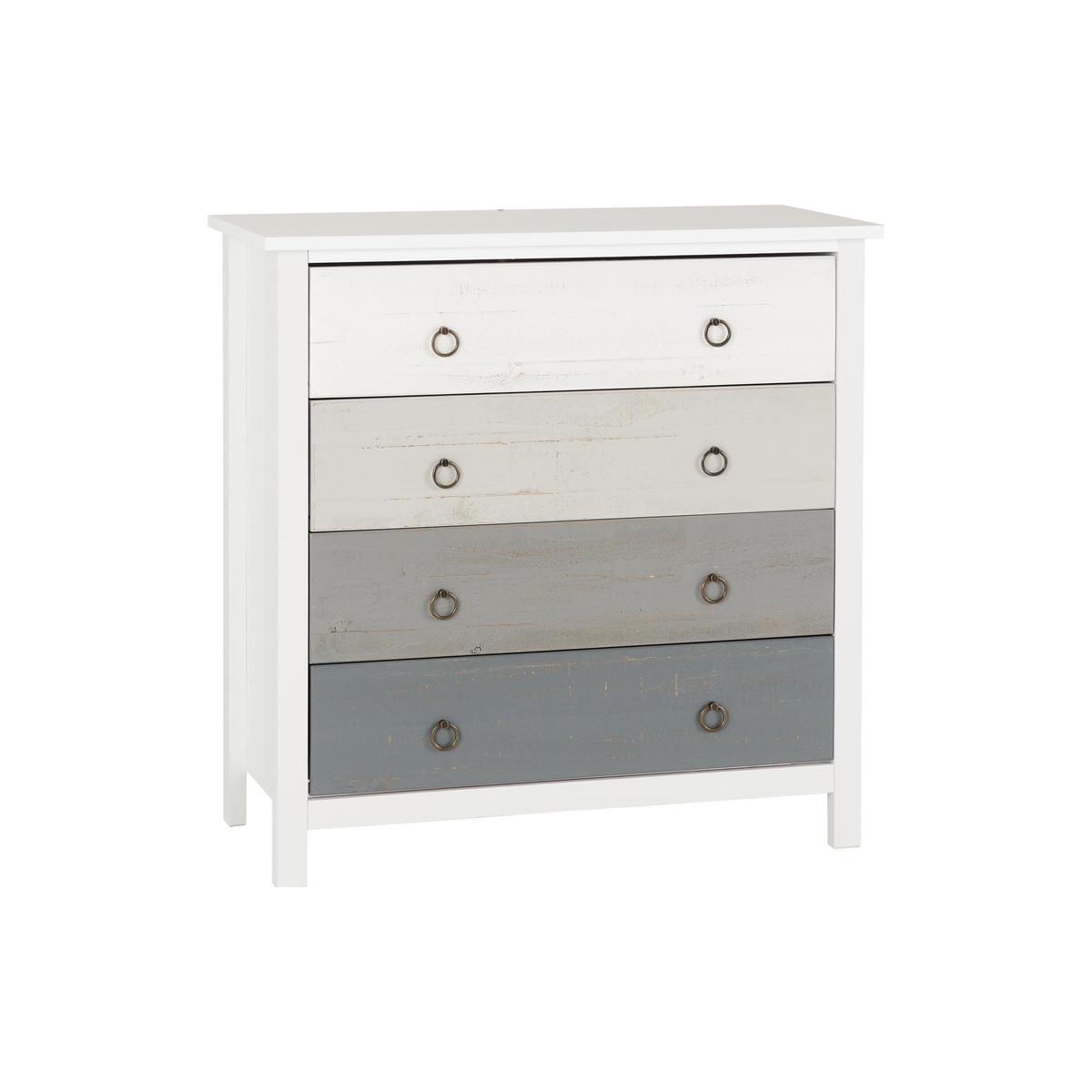 Offering a modern twist on a timeless design, the Vermount 4 drawer chest would make a great addition to any bedroom. This self-assembly chest of drawers offers ample storage space and is finished with gorgeous distressed, gradient drawer fronts and vintage style ring pull handles. Please note, unfortunately we cannot deliver this item to Northern Ireland or the Channel Islands.