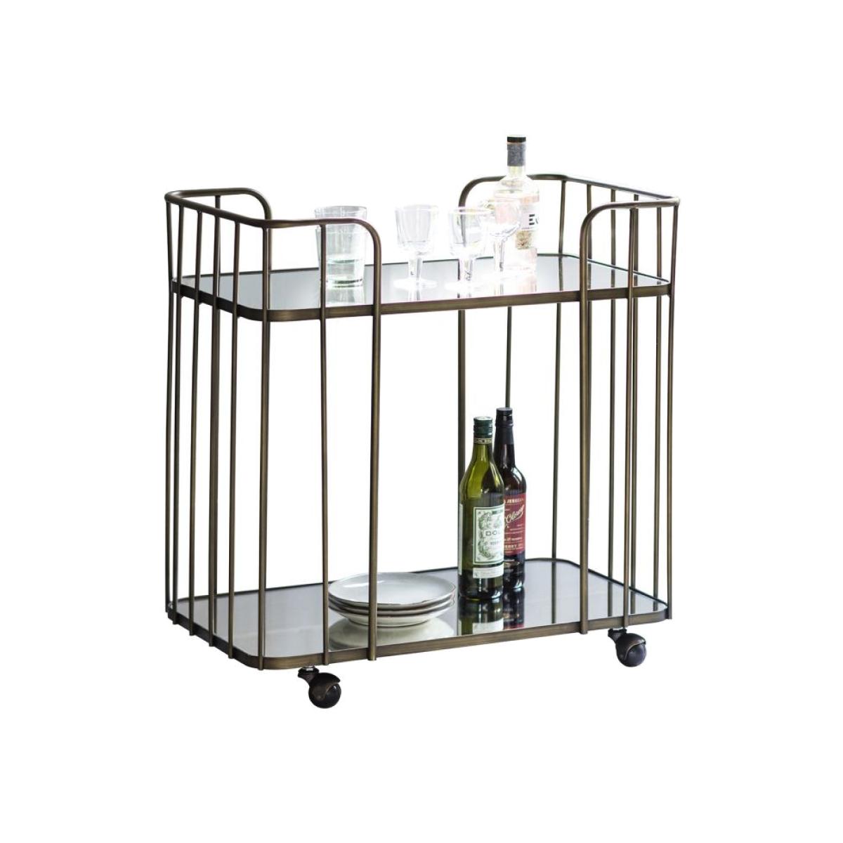 This entertaining essential features a toughened glass top and shelf with an art deco styled antique bronze finished metal frame and castors so it can effortlessly be wheeled into position whenever required.