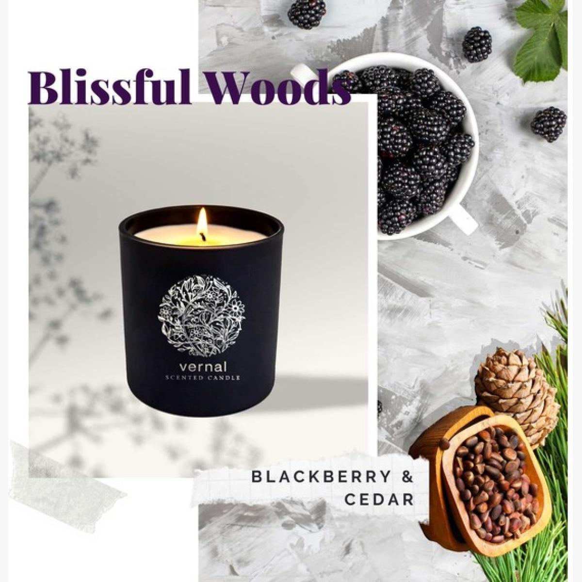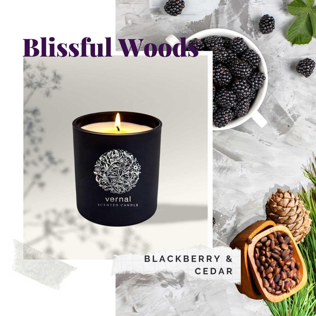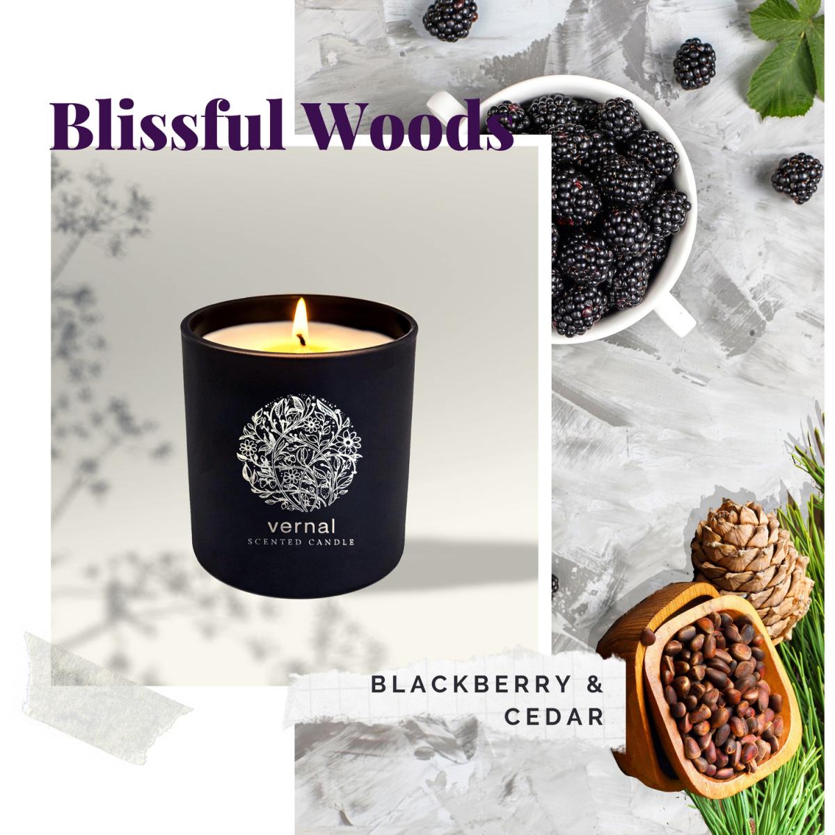 Vernal Blissful woods Scented Candle - Blackberry Cedar - Black