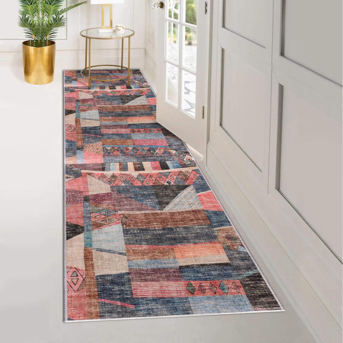 Vernal Colaj Blue, Pink, and Beige Machine Washable Rug - Blue, Pink, and Beige / 243cm