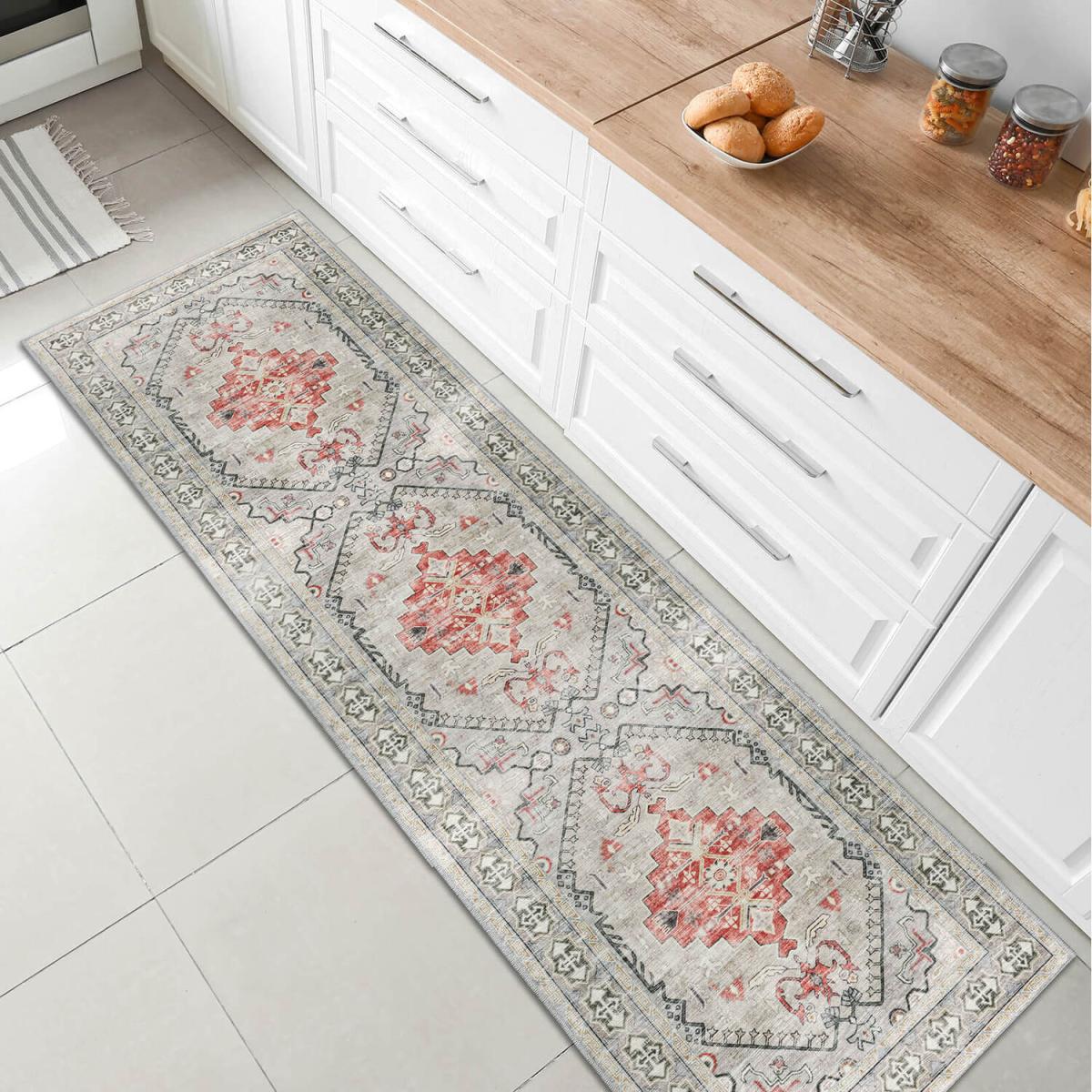 I really like this rug - it’s a versatile piece that can brighten up a variety of interiors. The combo of red, taupe, and yellow adds warmth and a touch of colour without overwhelming the space. It works particularly well in neutral kitchens, as shown in the image, where it helps anchor the room with a subtle pattern and colour. For styling, I’d suggest pairing it with wooden or white furniture to let the rug stand out, and considering its machine-washable feature for practical areas like kitchens or busy living rooms. Its size makes it ideal for narrow or elongated spaces, adding character without cluttering the room. Overall, a chic yet practical addition to a contemporary or traditional space.
