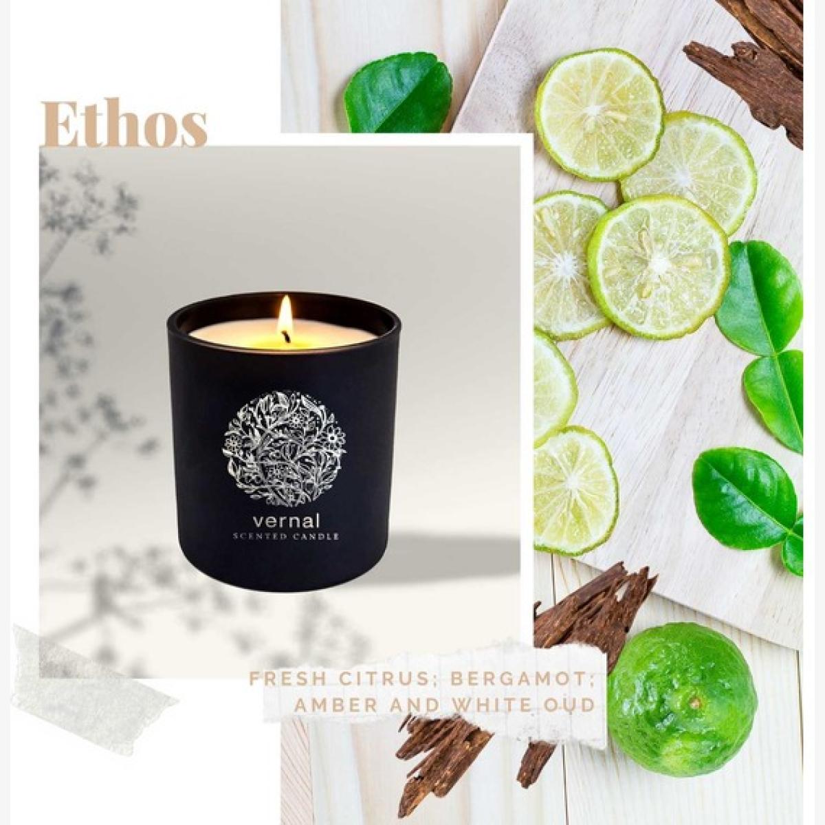 Vernal Ethos Scented Candle - Bergamot & White Oud - Black