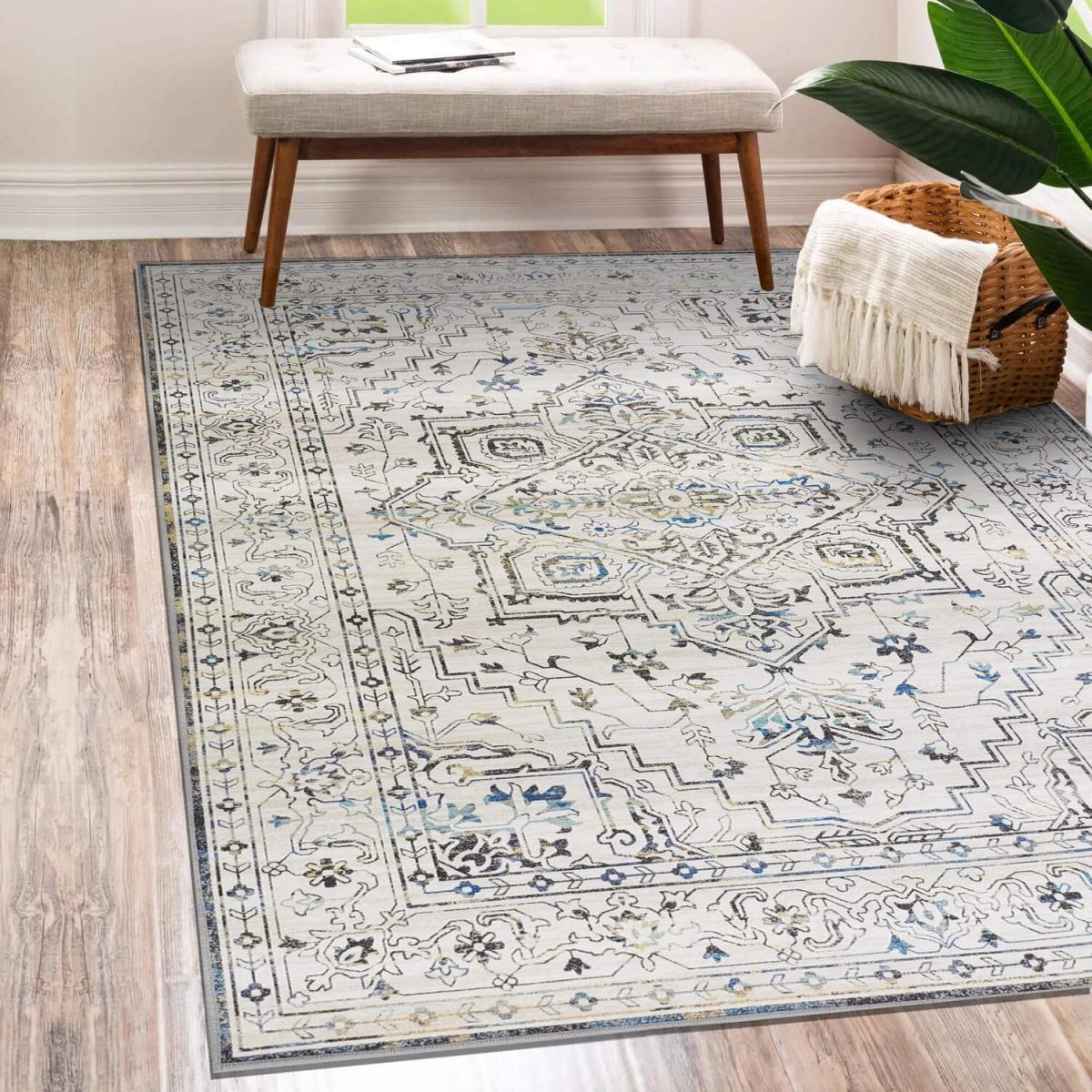 Vernal Peoria Persian Machine washable Area Rug, Blue Greycream - Blue/ Grey/cream / 152 cm x 213 cm