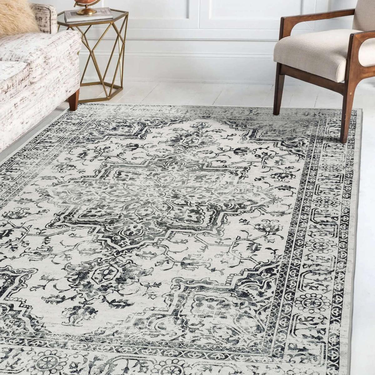 Vernal Peoria Persian Machine washable Area Rug, Grey - Grey / 120 cm x 180 cm