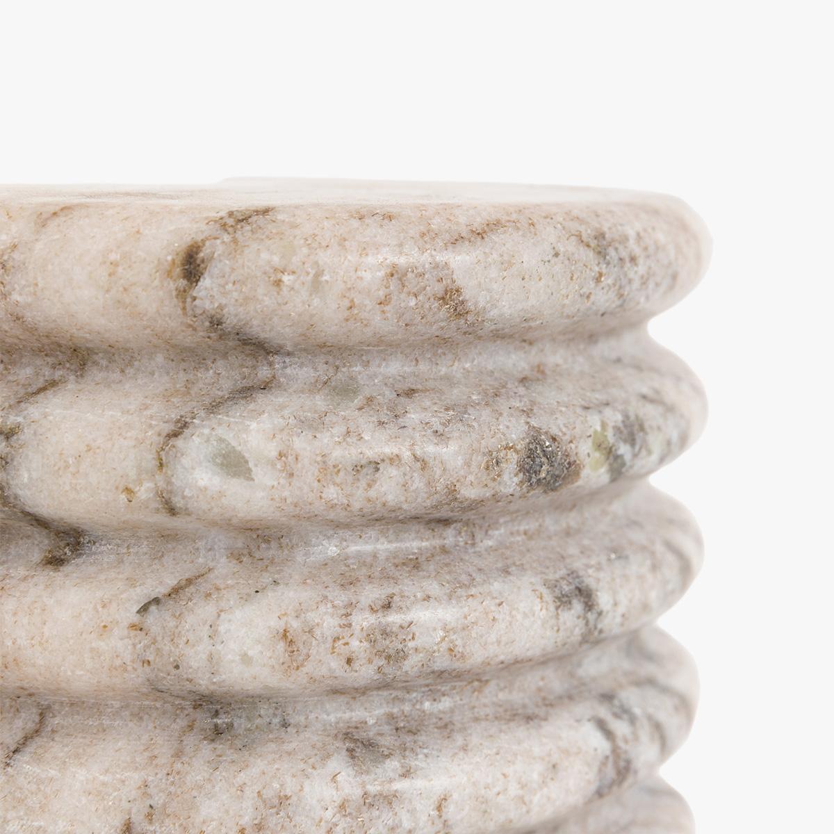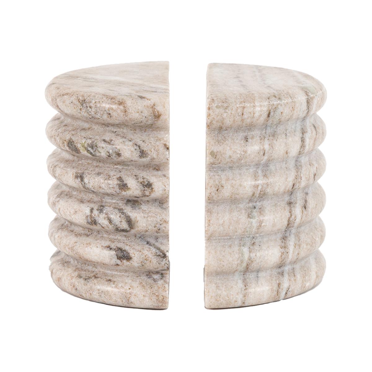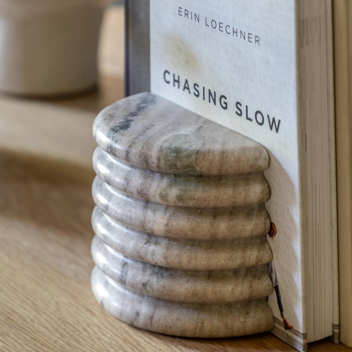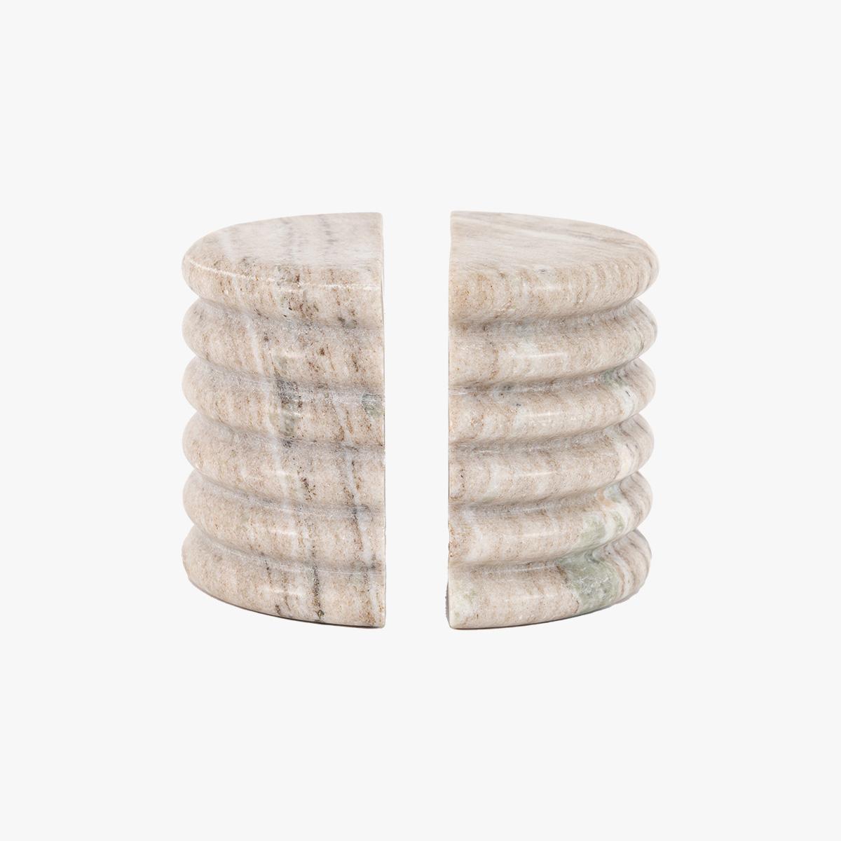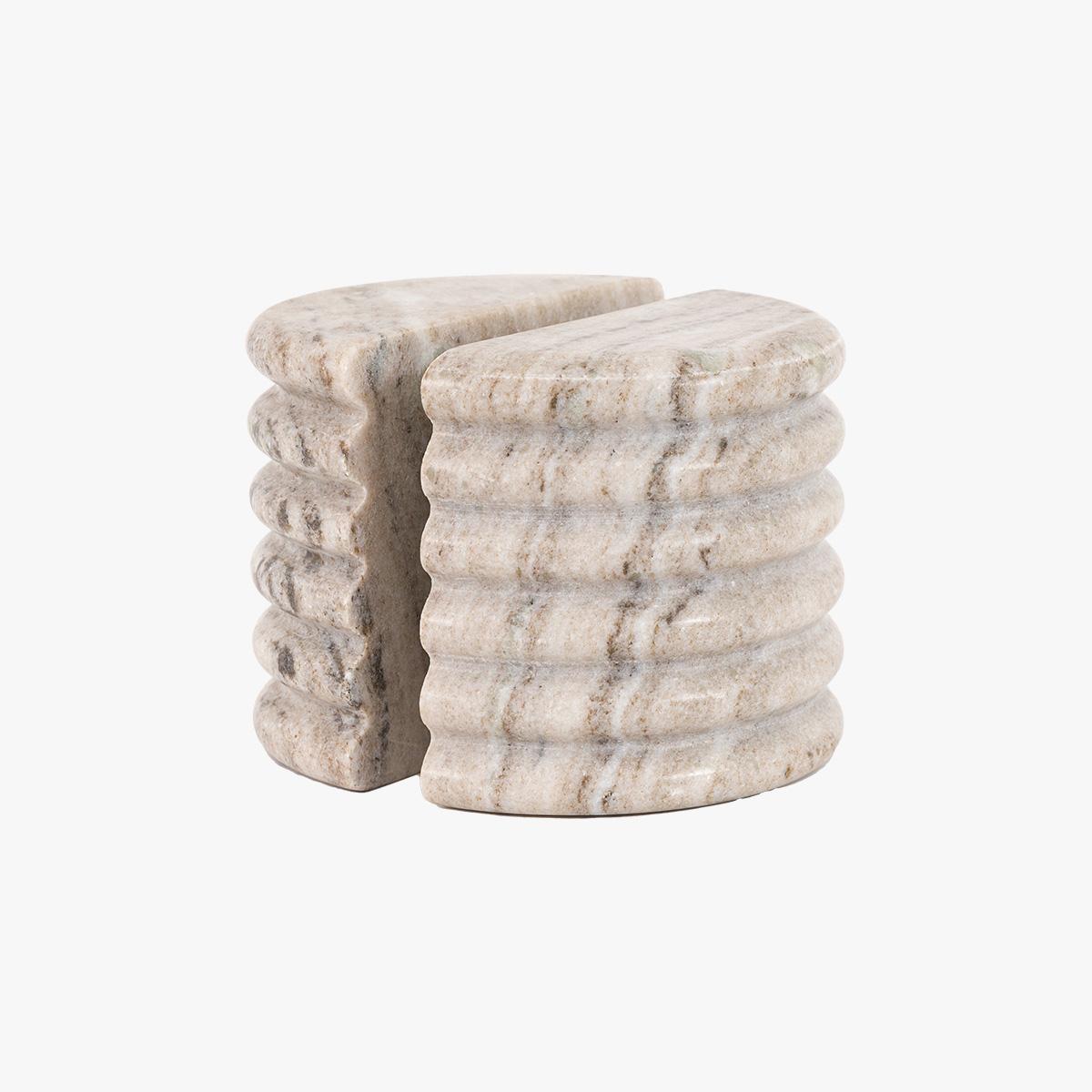 Add sculptural elegance to your shelves with the Vero Marble Bookends. Made from solid marble, these pieces feature a ribbed rounded silhouette that blends timeless style with modern form.
